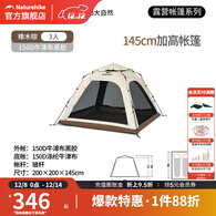 挪客ango升级款帐篷户外露营装备全套黑胶防晒天幕自动速开家庭公园帐 橡木棕/3人小号