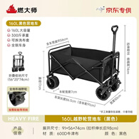 燃大师露营推车可折叠户外手推野餐营地拖车拉杆小拉车桌板车 越野款煤炭黑加宽车胎带双刹