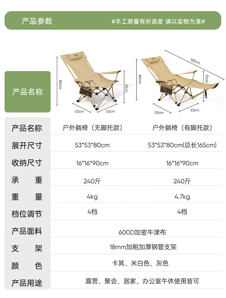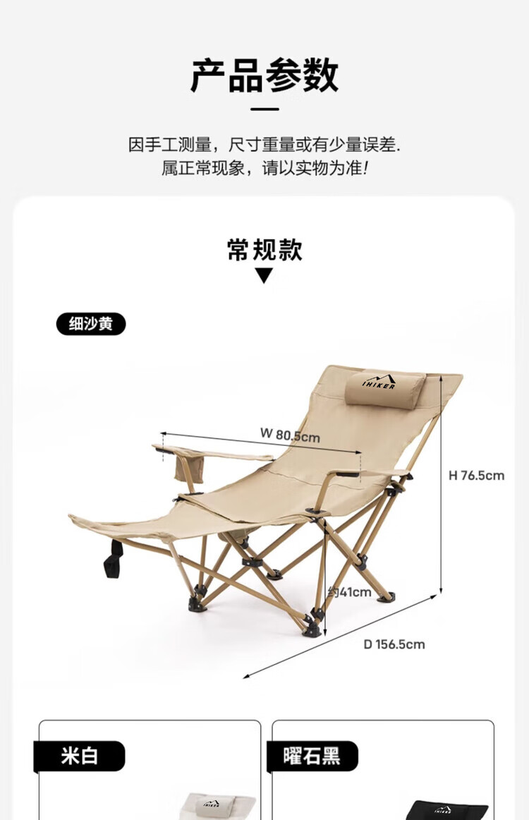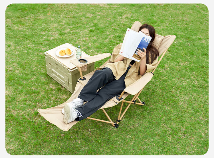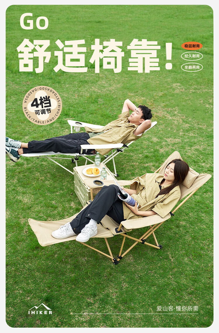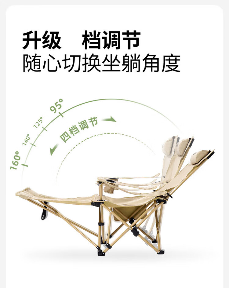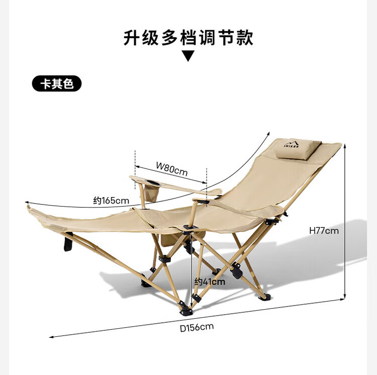 爱山客户外折叠椅子露营午休躺椅便携家用户外钓鱼椅露营沙滩坐躺两用 卡其-加长脚垫(四挡调节)配收纳袋