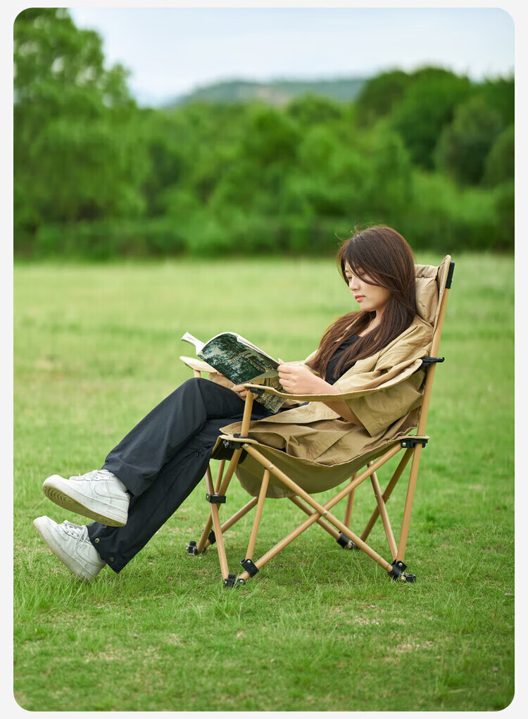 牧高笛(MOBIGARDEN) 户外露营可折叠便携式休闲椅 靠背铝合金椅子懒人椅 双层单人椅 橄榄绿plus(带布套)