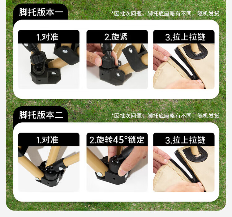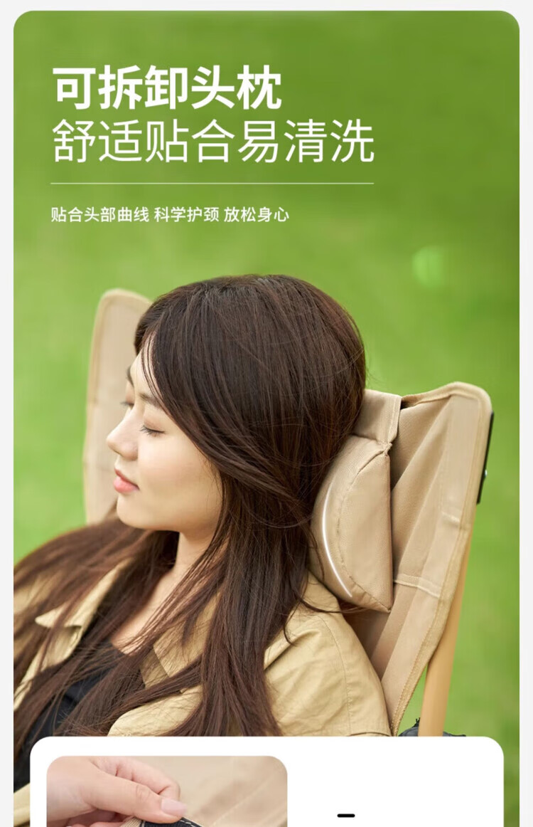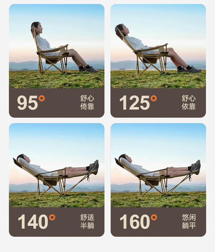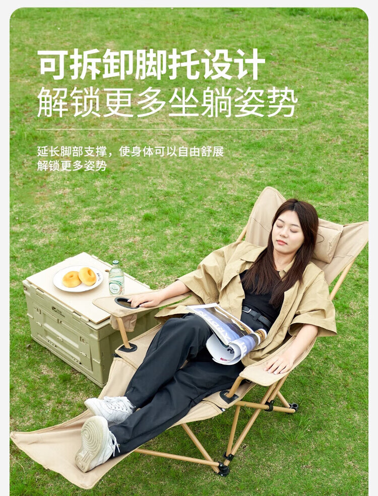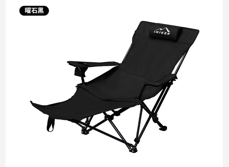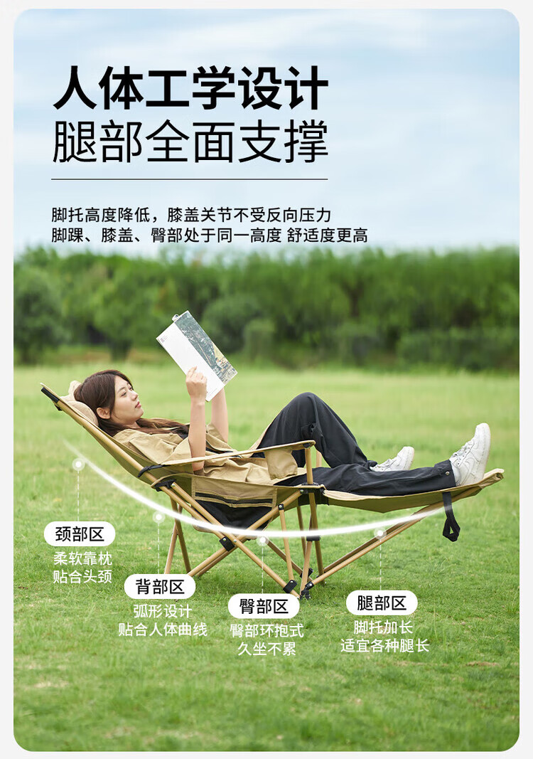 骆穂豆户外露营折叠椅躺椅午休椅可坐可躺可睡承重500斤加厚便携月亮椅 黑色带腿托