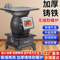 铸铁柴火取暖炉冬天室内采暖炉柴煤两用农村家用烤火炉子无烟煤炉 【铸铁】特厚大号+4米烟筒2弯头+防烫网+炉具礼包