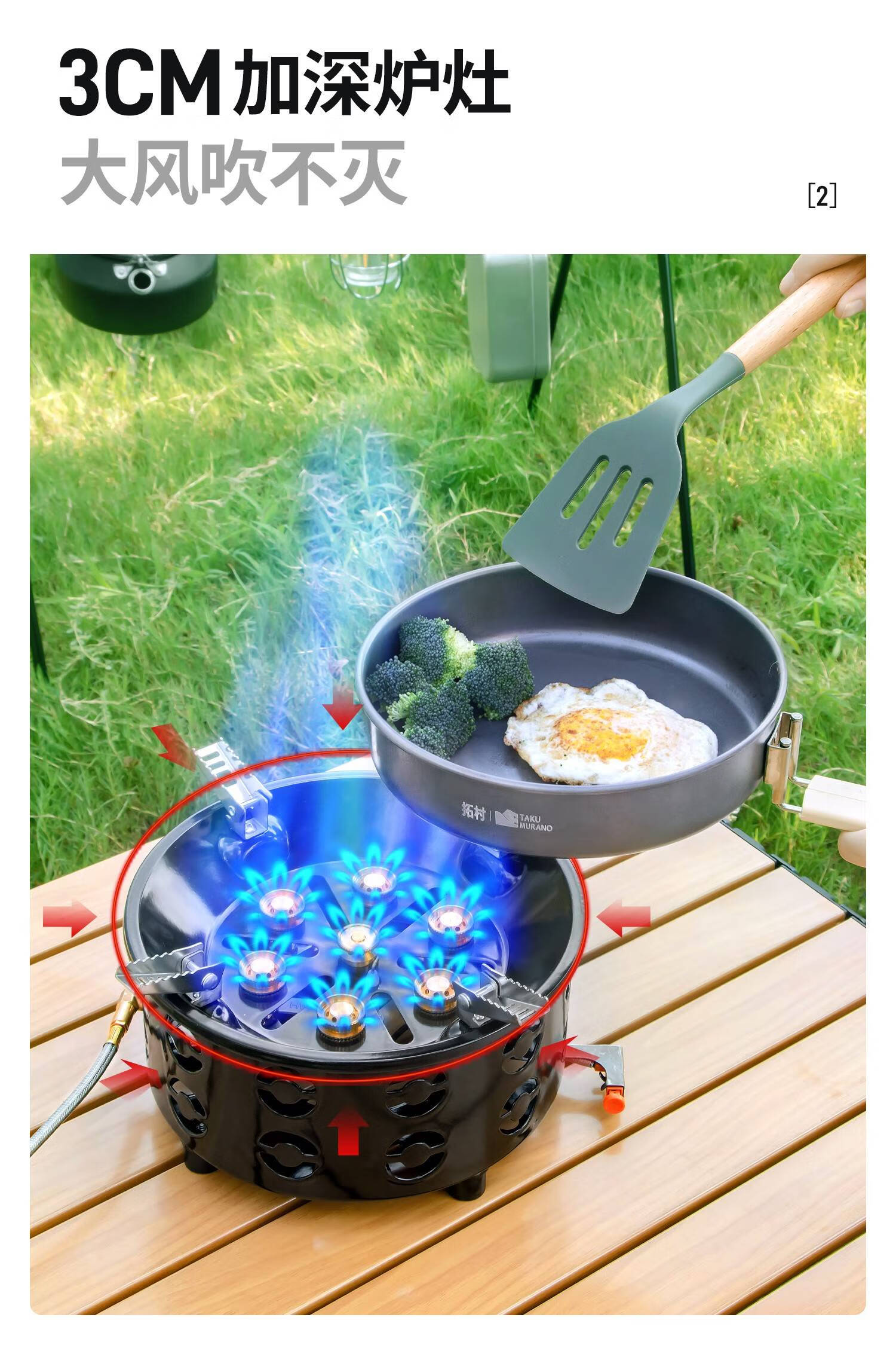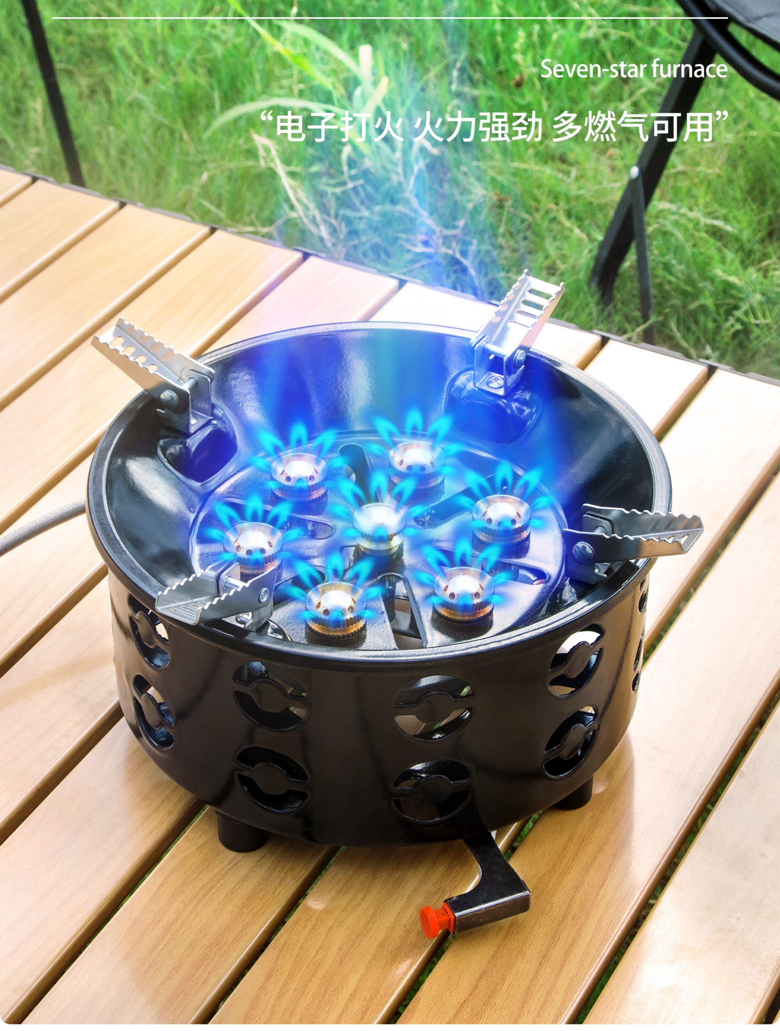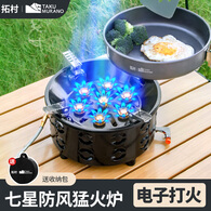 拓村户外七星猛火炉头卡式便携煤气瓦斯炉具野外露营家用燃气炉灶 [21800w电七星灶]升级防滑支架(