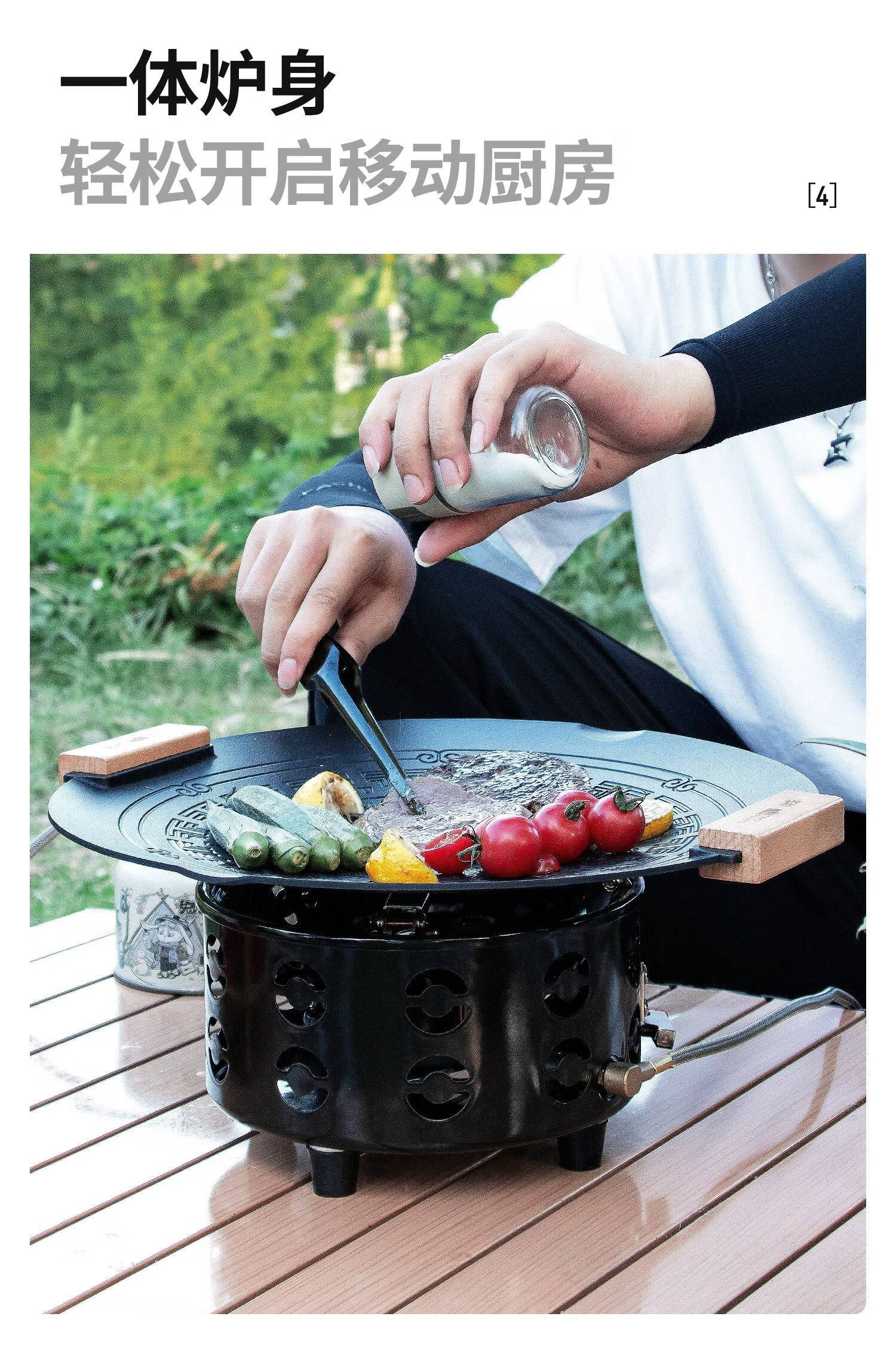 北岳户外锅具露营炊具烧水茶壶煎锅便携野外锅具野营吊锅套锅用品套装 带电子打火【21000w猛火】猛火炉