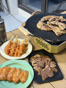 买回来就迫不及待的测试了下,大火可以煮火锅,红外可以烧烤,和我的大金锅太搭配了,哈哈。