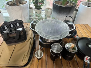 收到货立马开火试了一下大火力很猛,纯蓝色火焰。第一次买这种炉子,质量很好,方便收纳,不锈钢的茶具和烤盘质感也很好,锅具是加厚款的,物有所值。