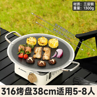 鹿险家户外露营卡式炉烤盘家用韩式不锈钢燃气电磁炉卡磁炉通用烧烤肉盘 316不锈钢烤盘38cm【电磁炉明火通用】