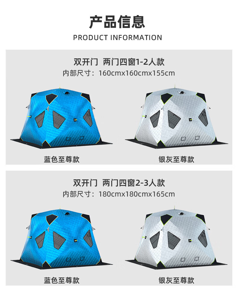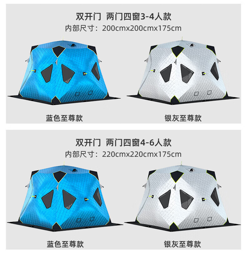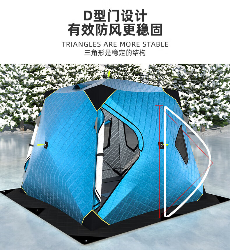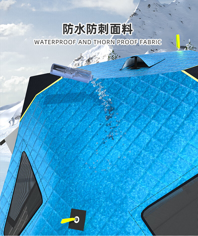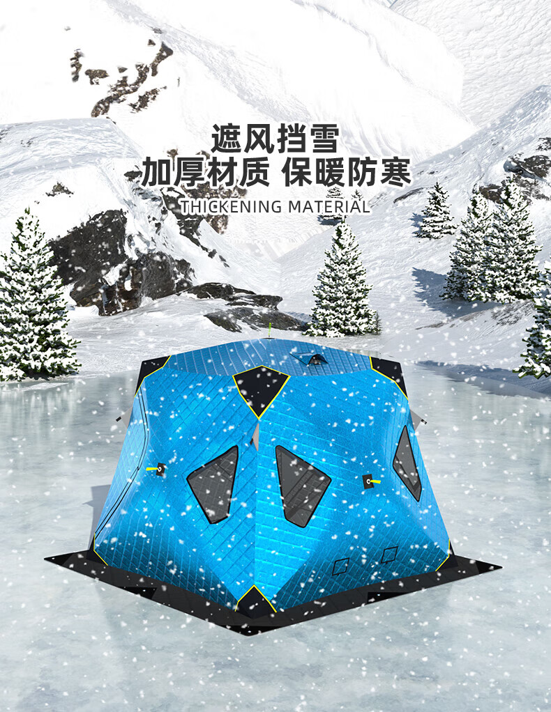 卡莱普瓦超大保暖夹棉加厚冬季帐篷户外冰钓防寒防雨钓鱼帐篷露营装备 蓝色加厚夹棉帐篷 2-3人款
