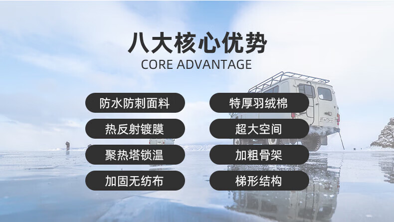 东西不错虽然比其他家的小贵,但物有所值,用料材质厚度都比较满意,前两天参加北汽俱乐部内蒙古多伦百车雪原穿越活动,在冰湖上聚餐,零下18度大家都在外面冻着我们却在保暖帐篷中点着电暖气,电火锅加热食材,非常令车友羡慕。