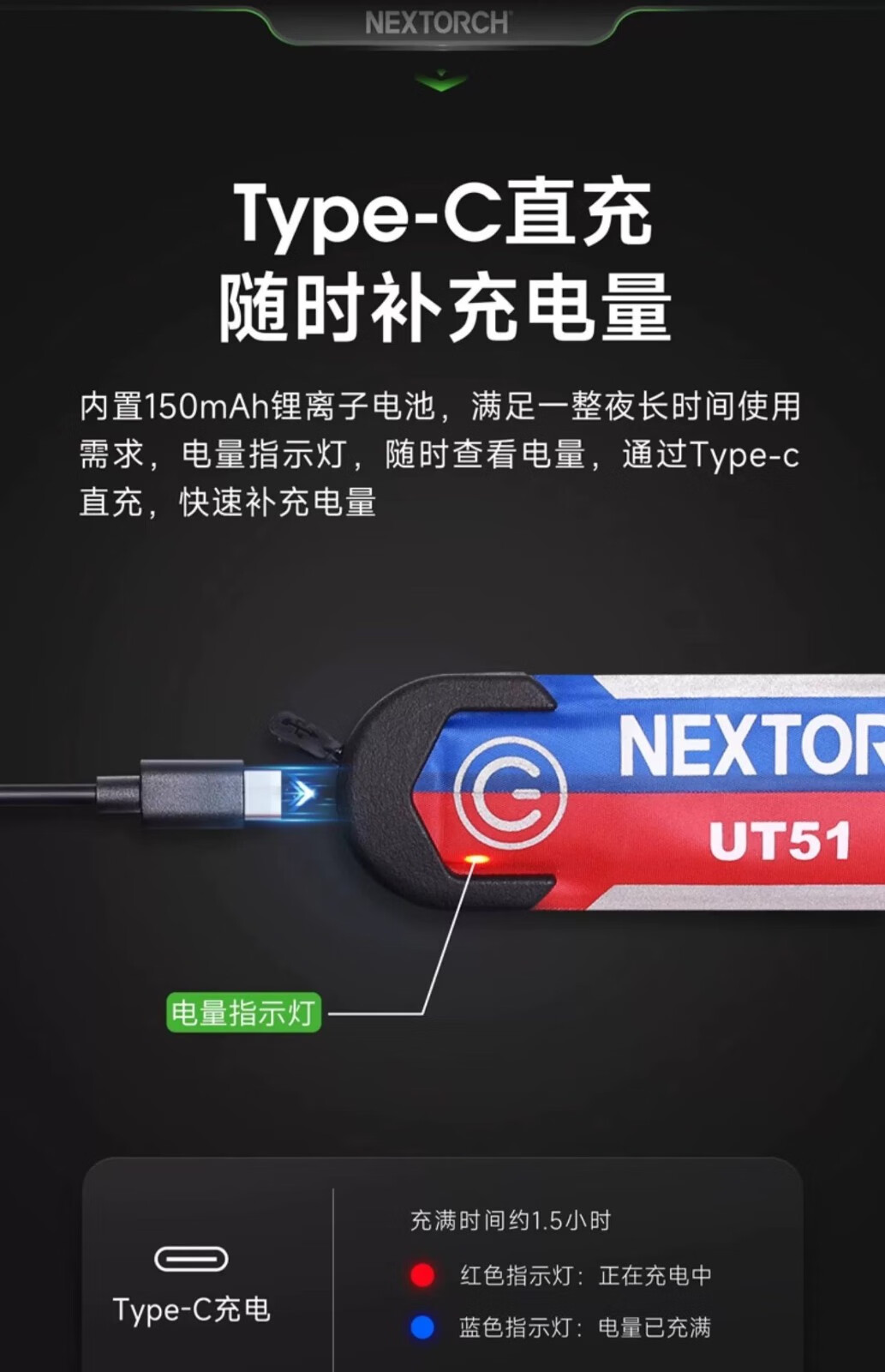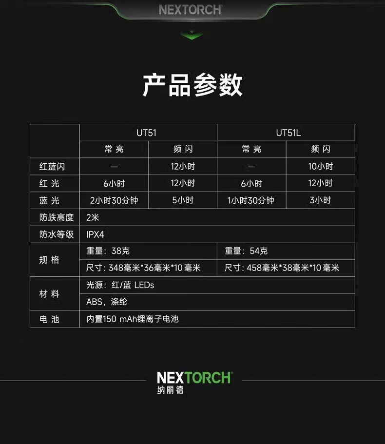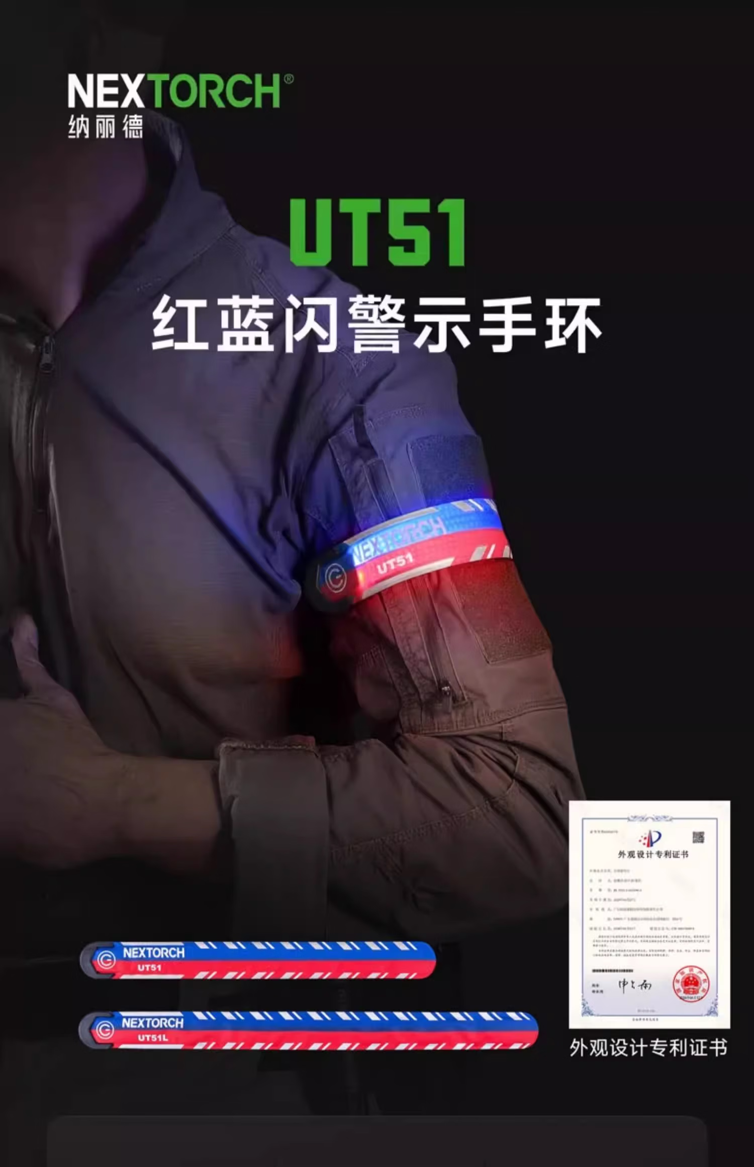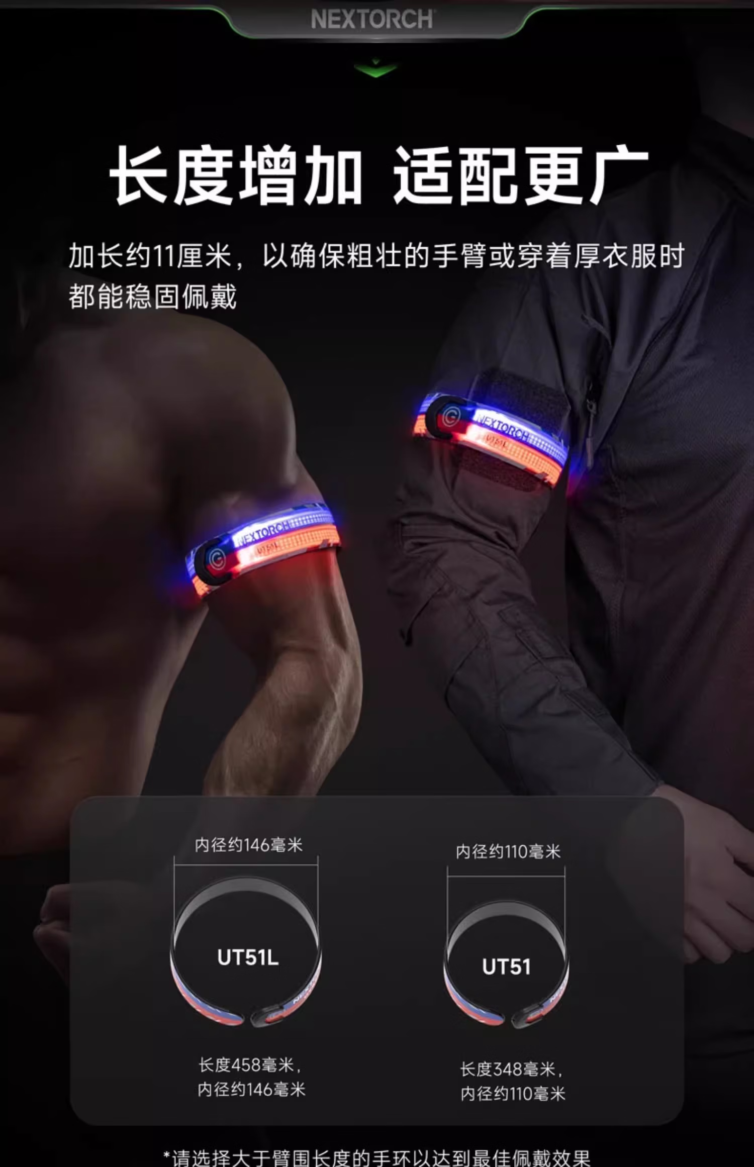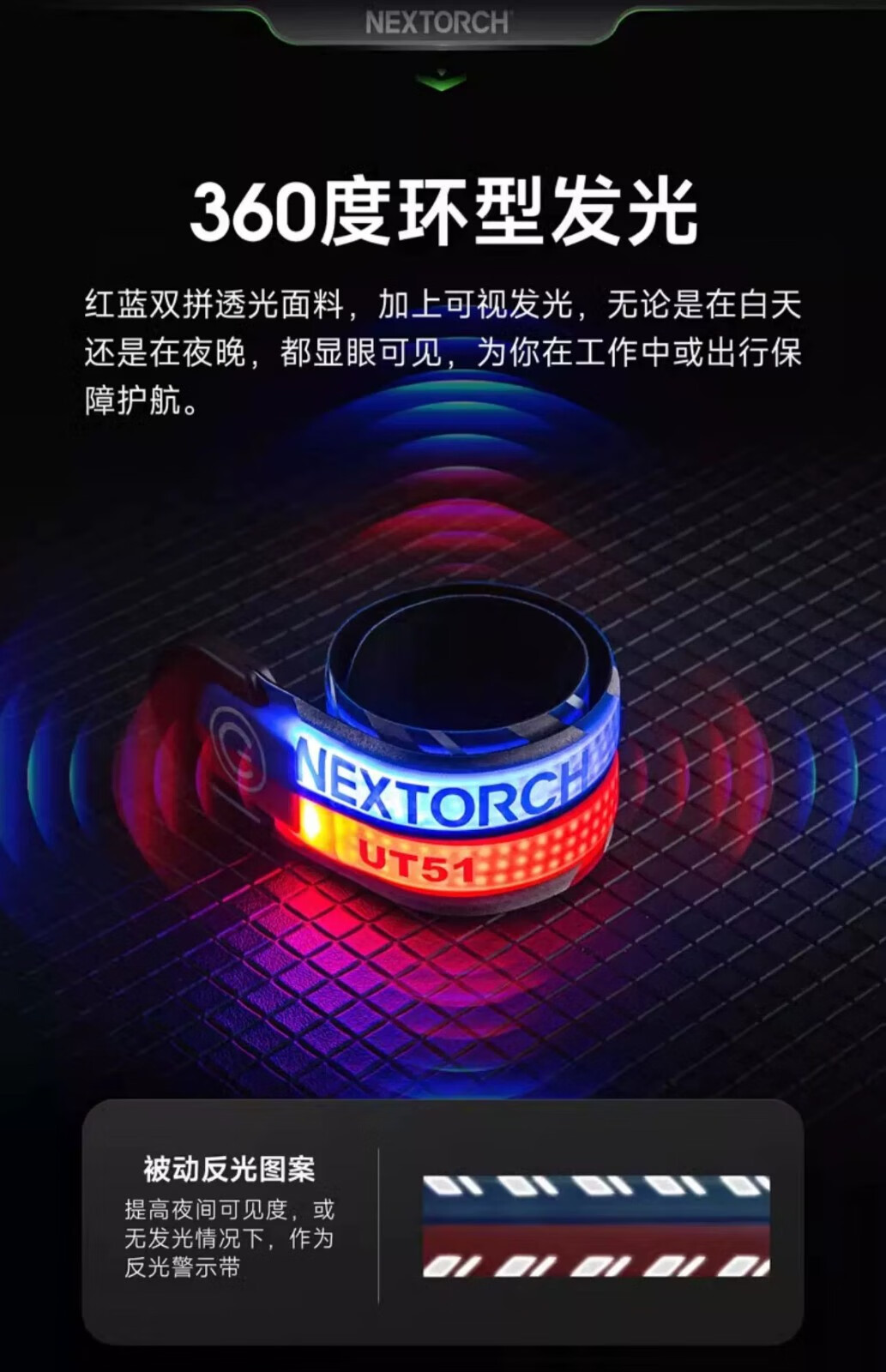 纳丽德(NEXTORCH)UT51L红蓝闪手环夜跑发光手环Type-C直充360度环型安全巡视信号灯 UT51
