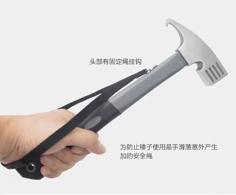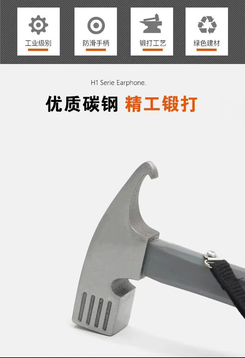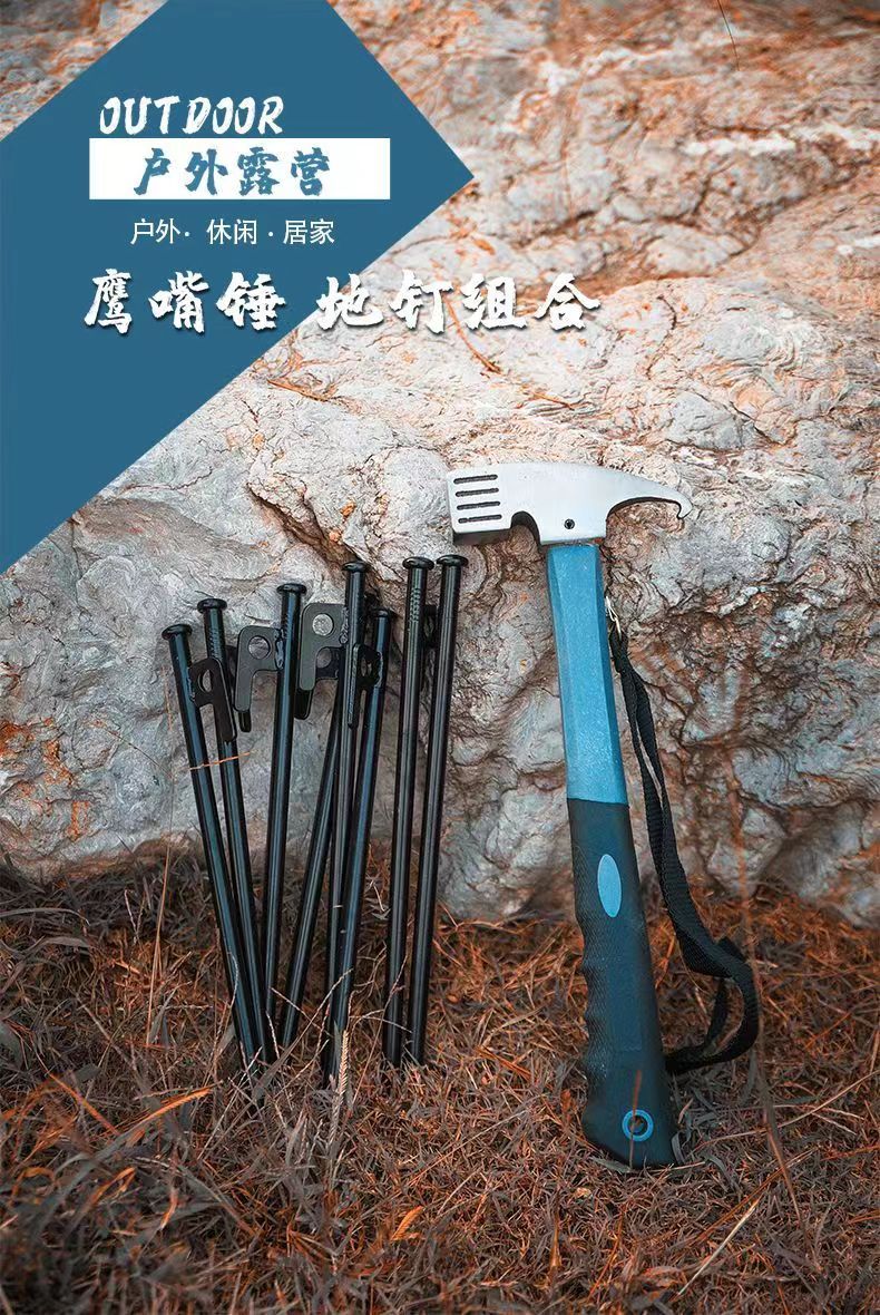 oein野营铁锤户外地钉锤多功能锤鹰嘴锤碳钢篷天幕拔钉锤帐篷露营工具 灰色【野营鹰嘴锤+防脱绳】