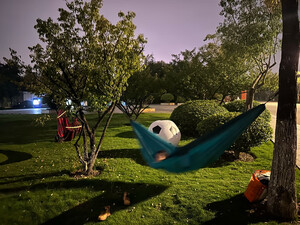 吊床材质很轻便,可以收纳成小小一包,平时放包里都行,但是感觉还很结实,成人在上面完全没问题。