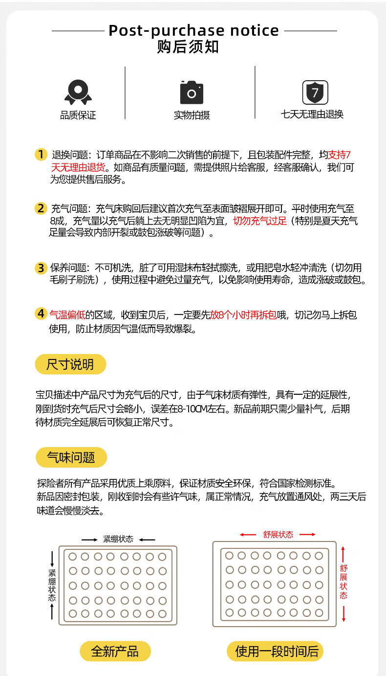 探险者(TAN XIAN ZHE)充气床垫双人充气床气垫床充气泵自动充气床打地铺家用双人气垫床 【双人】充气床+手动泵