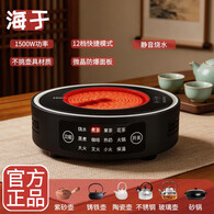 海于电陶炉小型煮茶炉家用1500W不挑锅圆形电磁炉低辐射12档火力功夫茶砂铫电烧水炉保温多功能触控 黑色新款:12种功能快捷模式/1500W