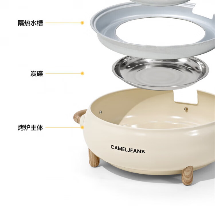 CAMELJEANS围炉煮茶电炭两用家用户外烧烤烤奶无烟烤肉2025新款 电炭两用围炉-米白色-175CH22007