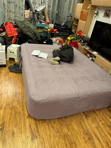 充气床垫,高度尤其能满足方便坐和睡眠的高度,不管是大人细路都十分方便,硬度适中,可根据气量调节,颜色户外正合适,充气也相当快捷!