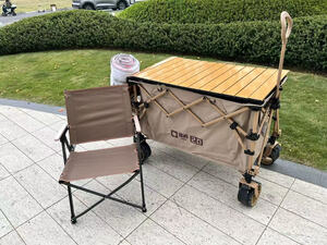 疆屿露营车野营户外折叠手推车野餐摆摊拖斗车儿童可躺超大聚拢营地车 黑色聚拢基础拖斗+碳钢桌面
