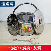 XMSJ木炭烤火炉子烤火盆家用冬天烧木炭取暖户外多功能加厚不锈钢烧烤 木炭炉+灰漏+炭夹【送烧烤网】