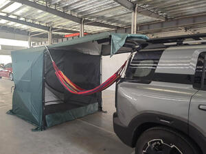 JEEP天幕帐篷户外露营帐篷全自动速开便捷天幕二合一防晒家庭野营装备 大号米白黑胶款套餐3