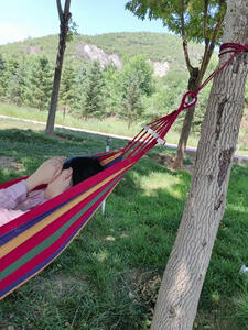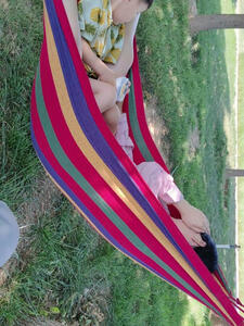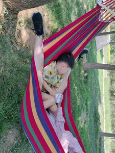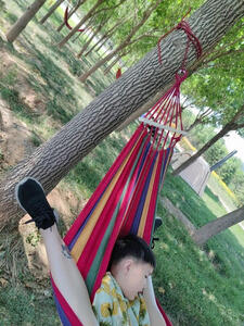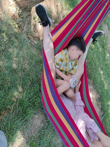 吊床来了,质量很好,很喜欢,出去玩带着正好哄孩子,想在下单一个送朋友,上图给想买的亲们做个参考
