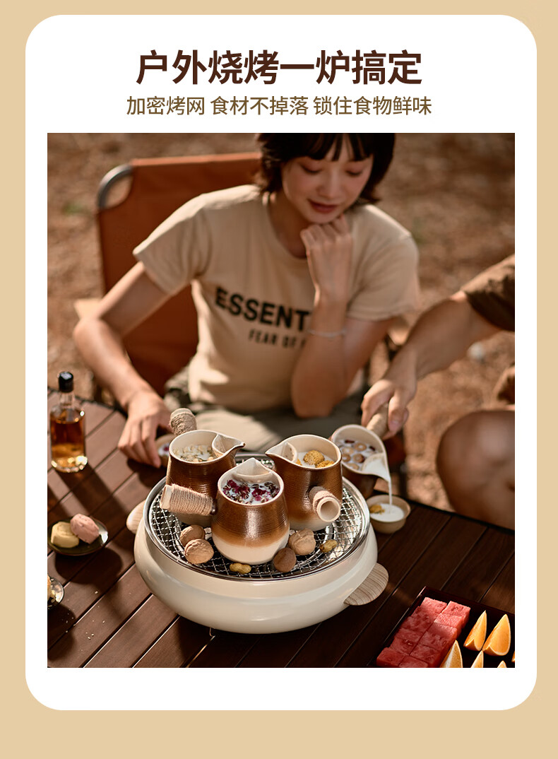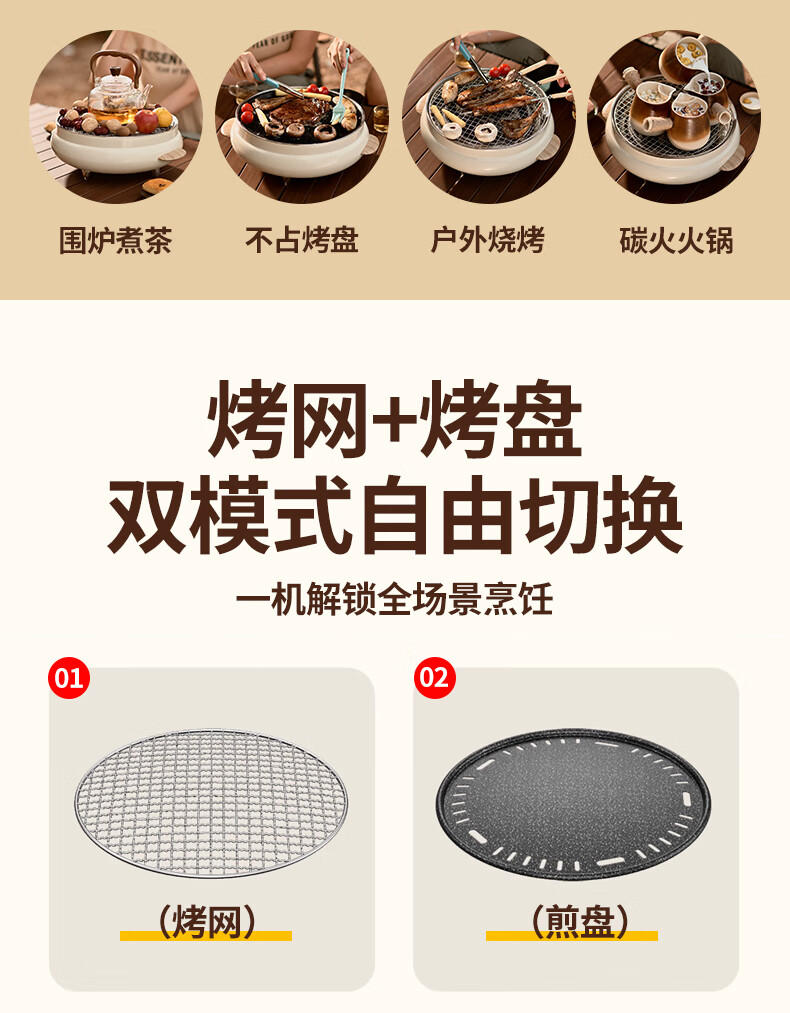 探险者(TAN XIAN ZHE)2024新款电碳两用围炉煮茶烤火炉套装 烤网烤盘+收纳包【整机可拆卸】