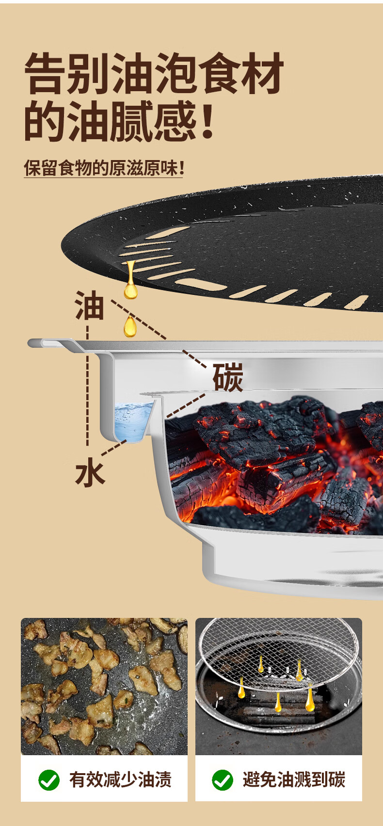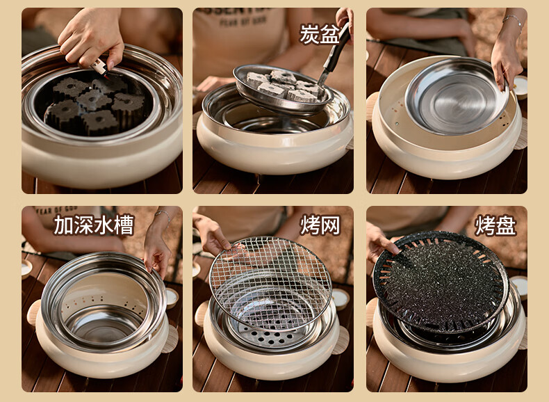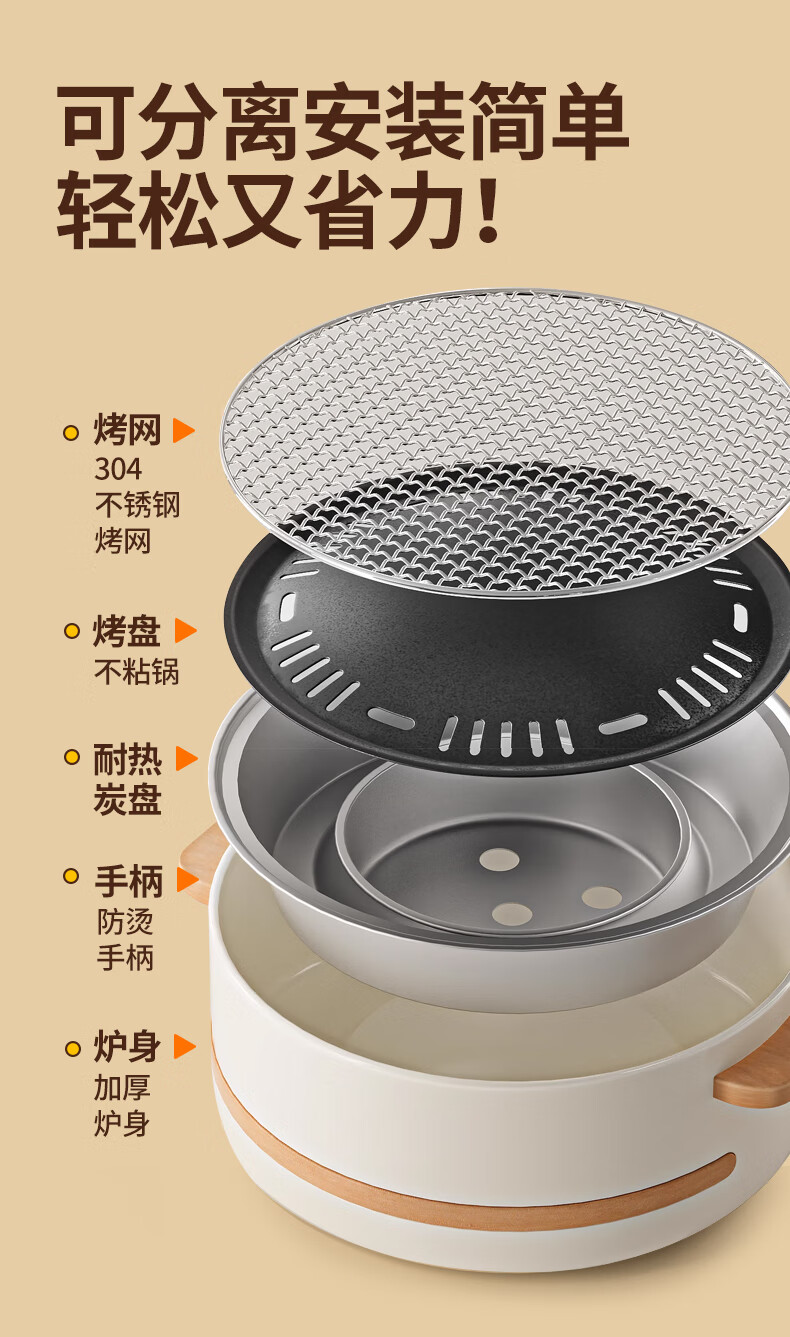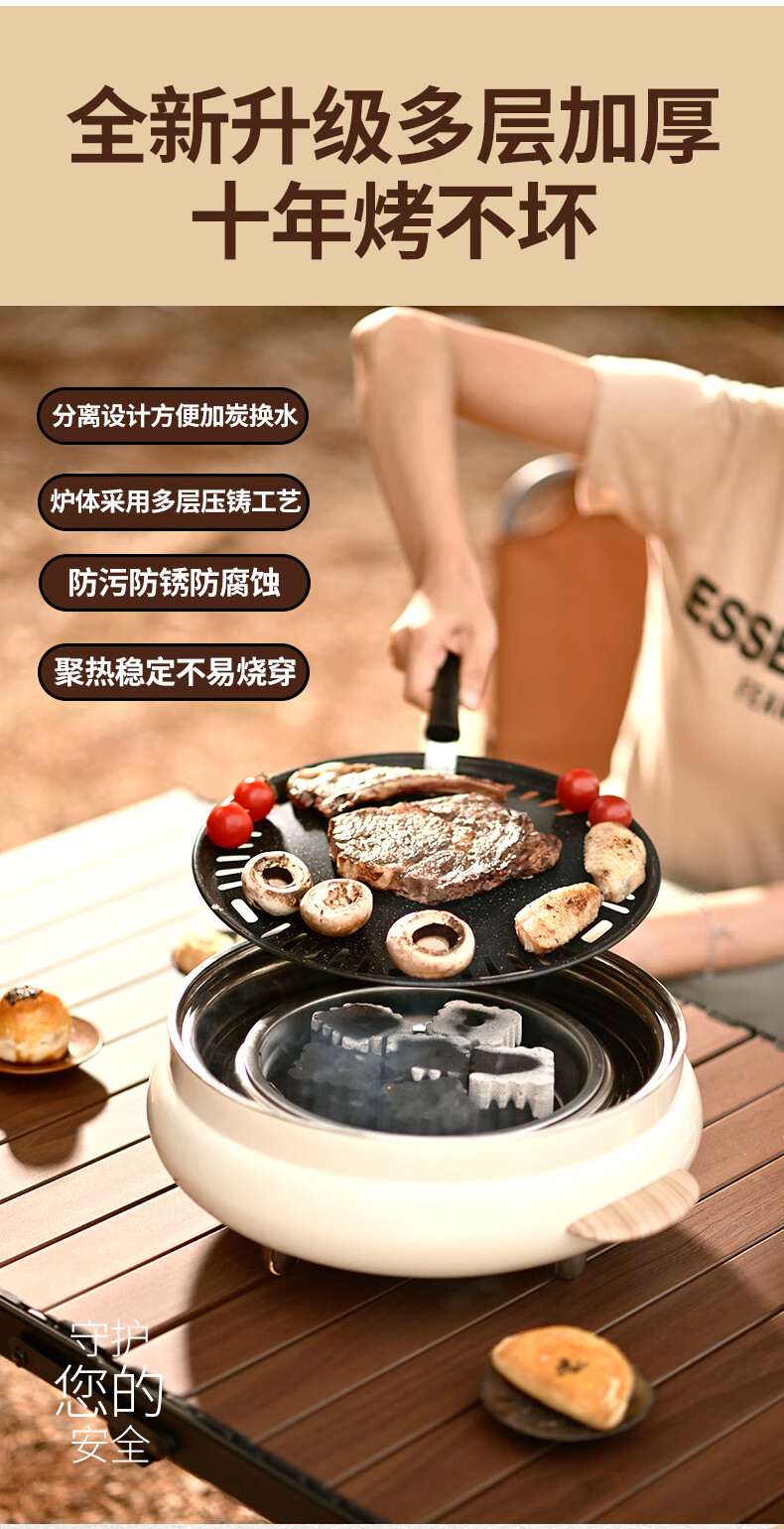 旗速围炉煮茶烧烤炉套装家用室内烤火炉木炭烤肉盘取暖盆烧烤架 烤盘+烤网【纯炭桌面围炉】