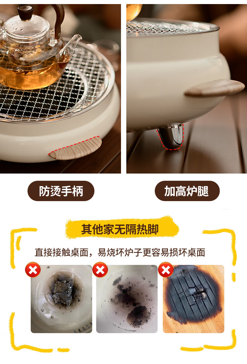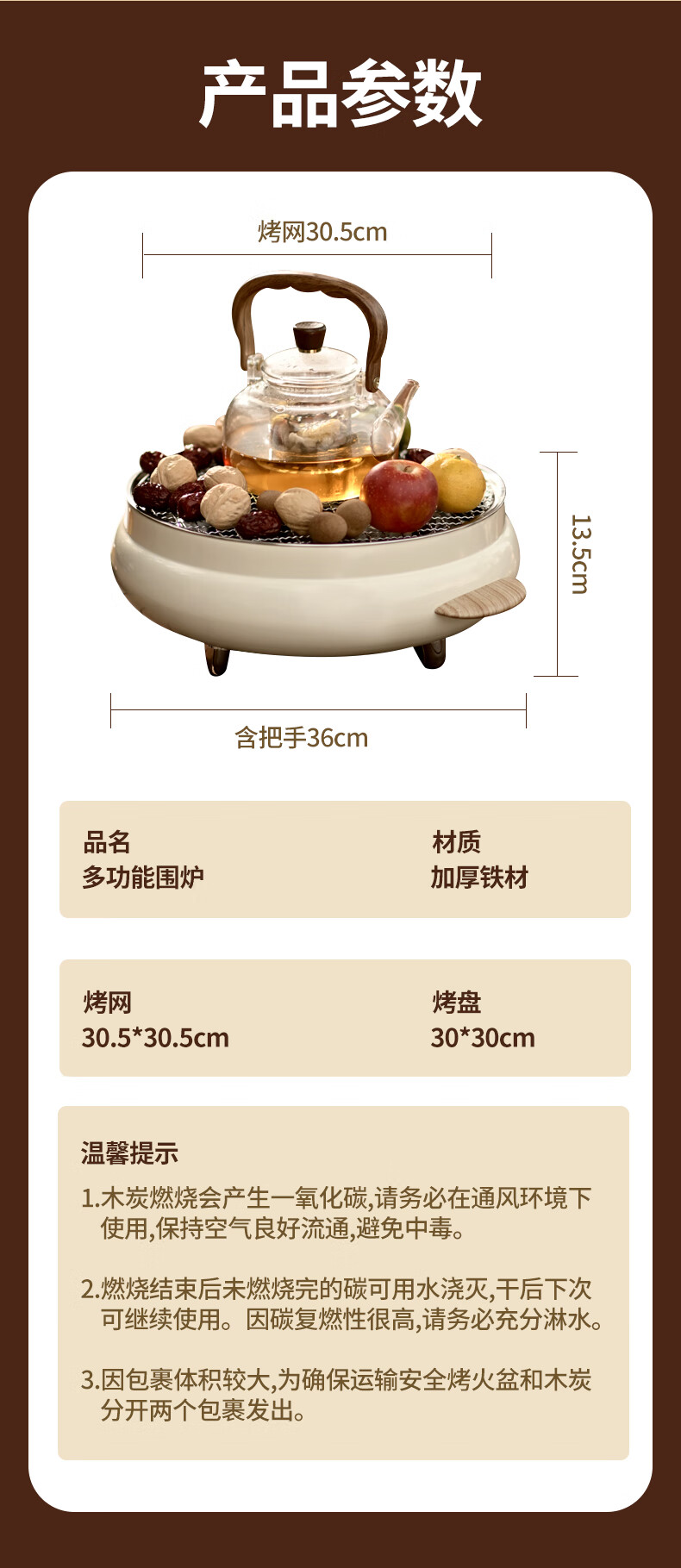 北极狼围炉煮茶家用庭院室内烤火盆煮茶烧水冬季户外露营烧烤取暖 59cm围炉5斤碳5件套