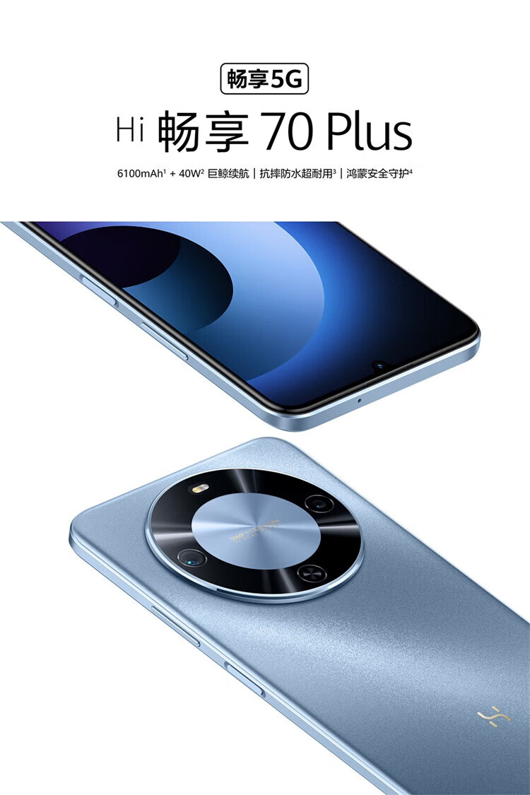 华为智选手机 畅享70plus 5G全网通 6100mAh+40W续航鸿蒙生态 巨鲸续航 冰晶蓝-8G-256GB 官方标配【赠2年店铺延保+90天碎屏保】