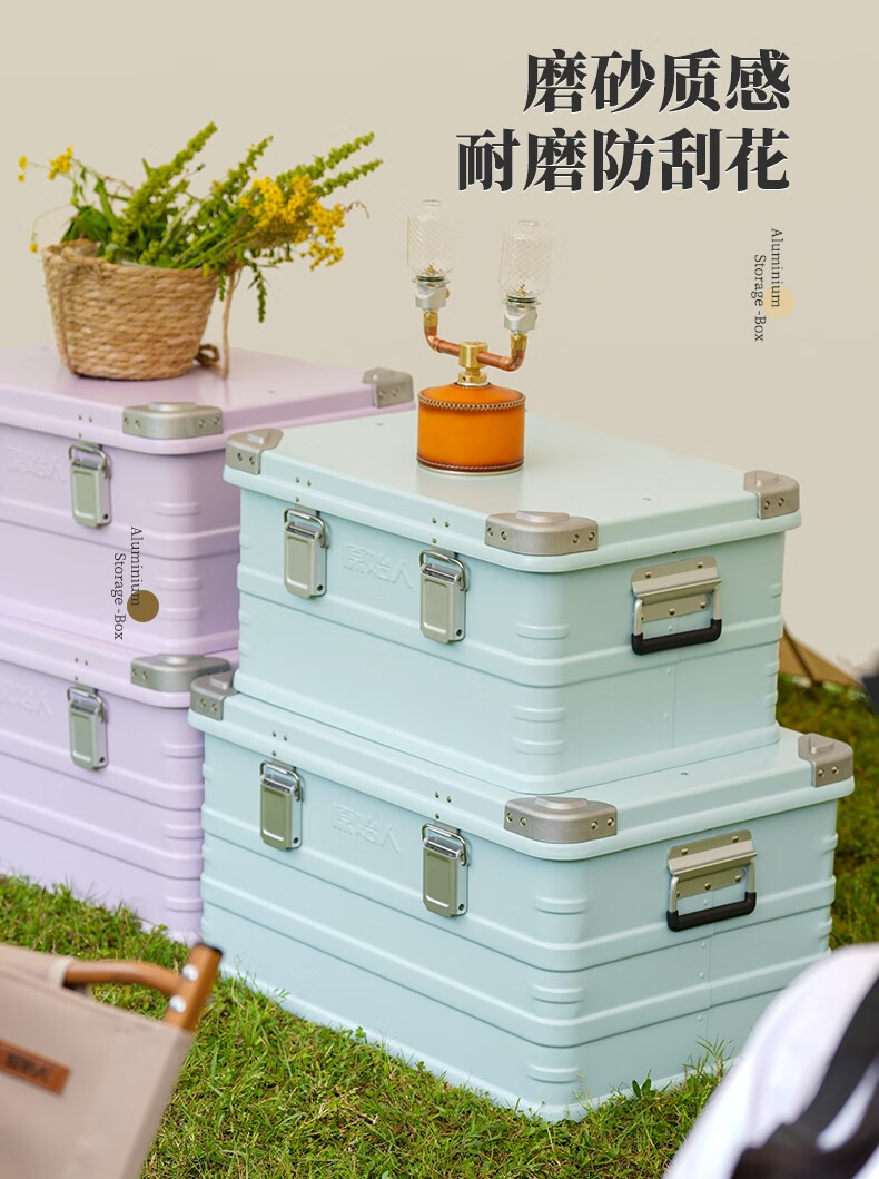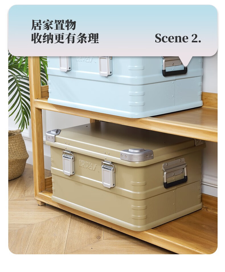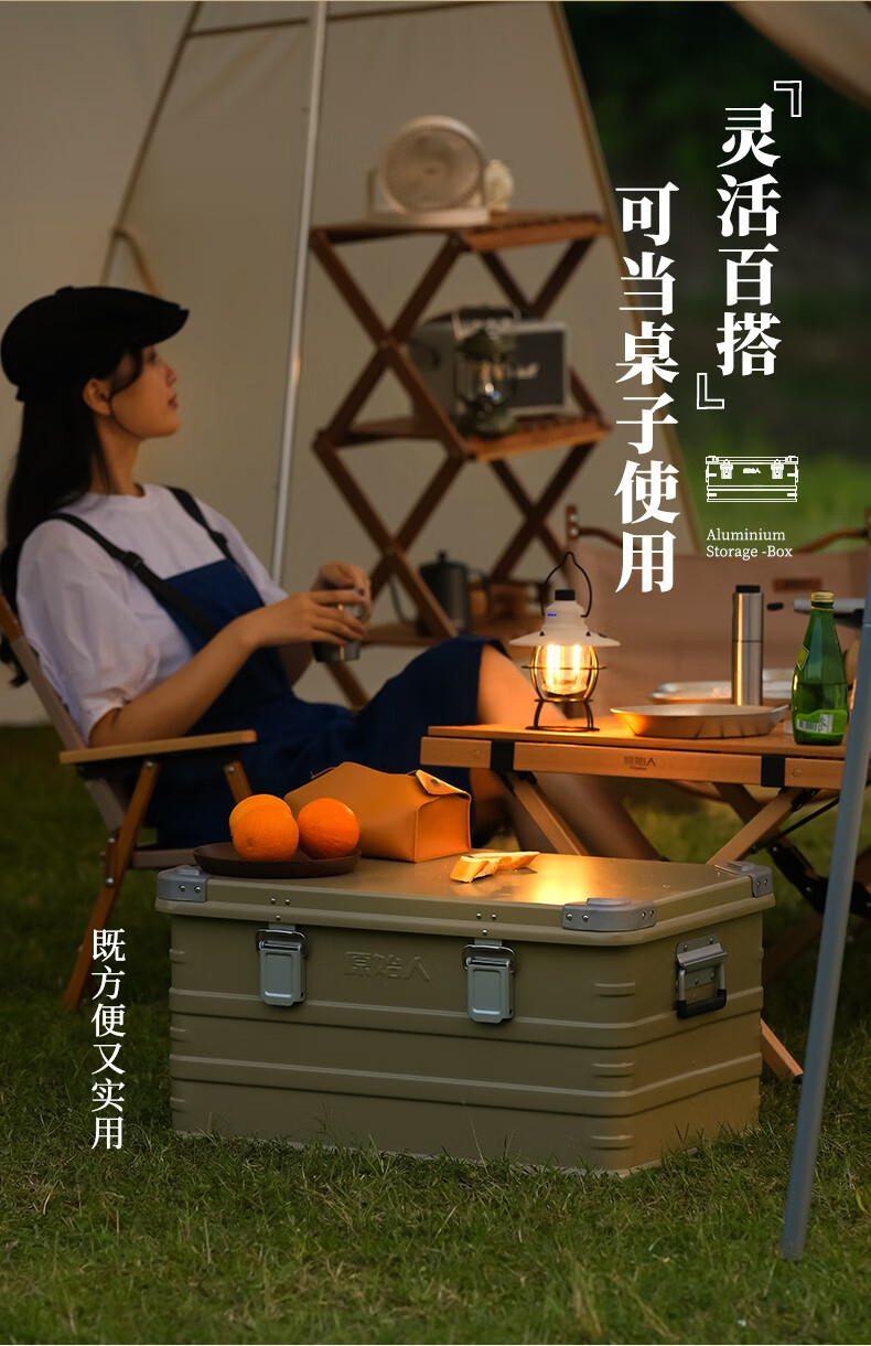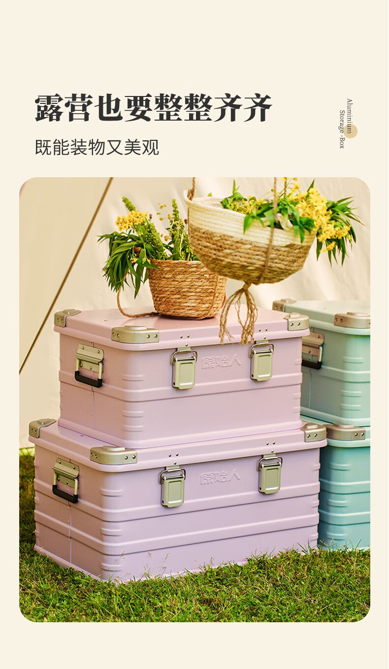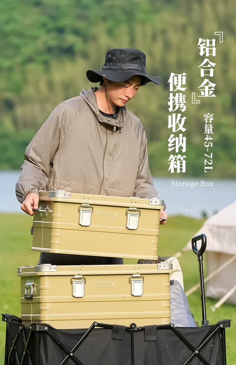 原始人铝合金收纳箱户外野营露营储物置物箱子家用旅行车载整理箱 44L桦木色