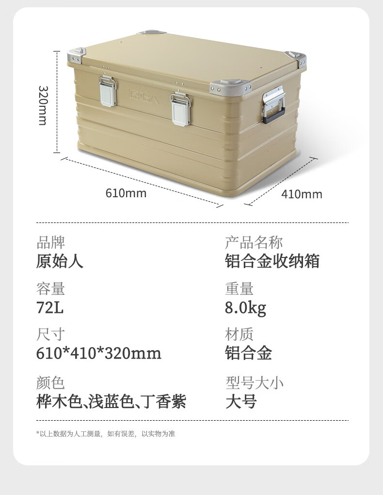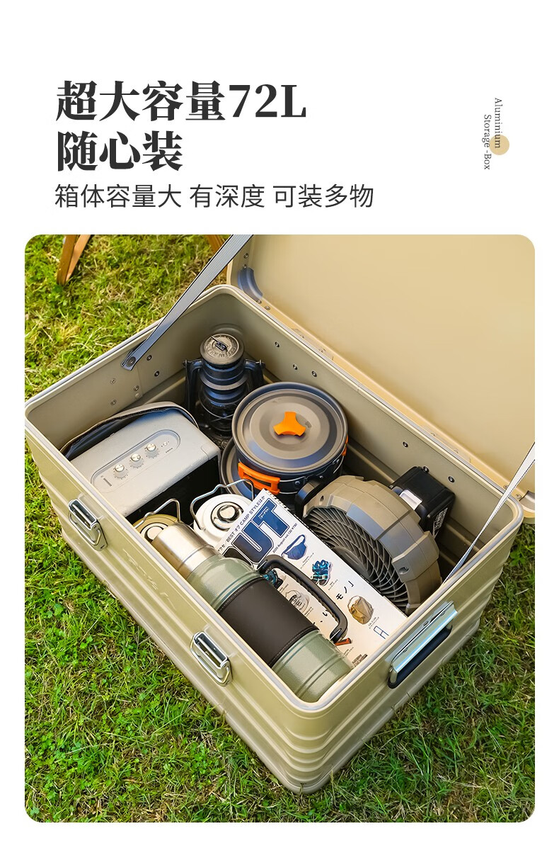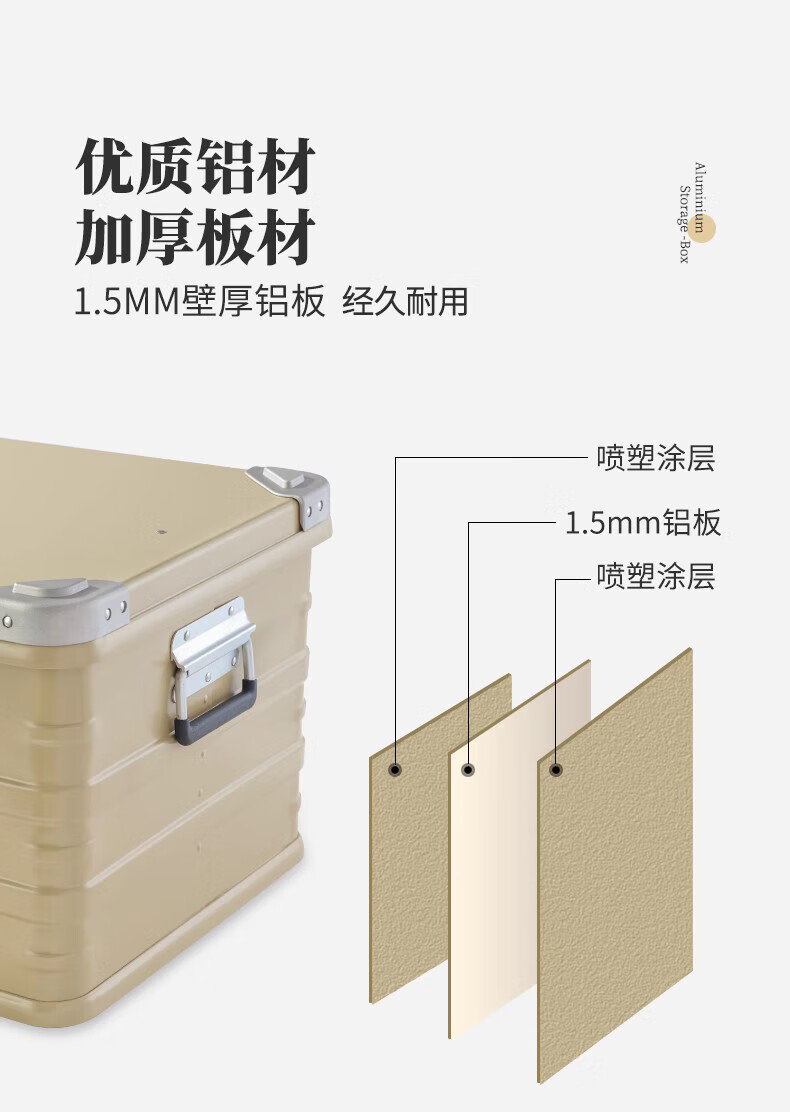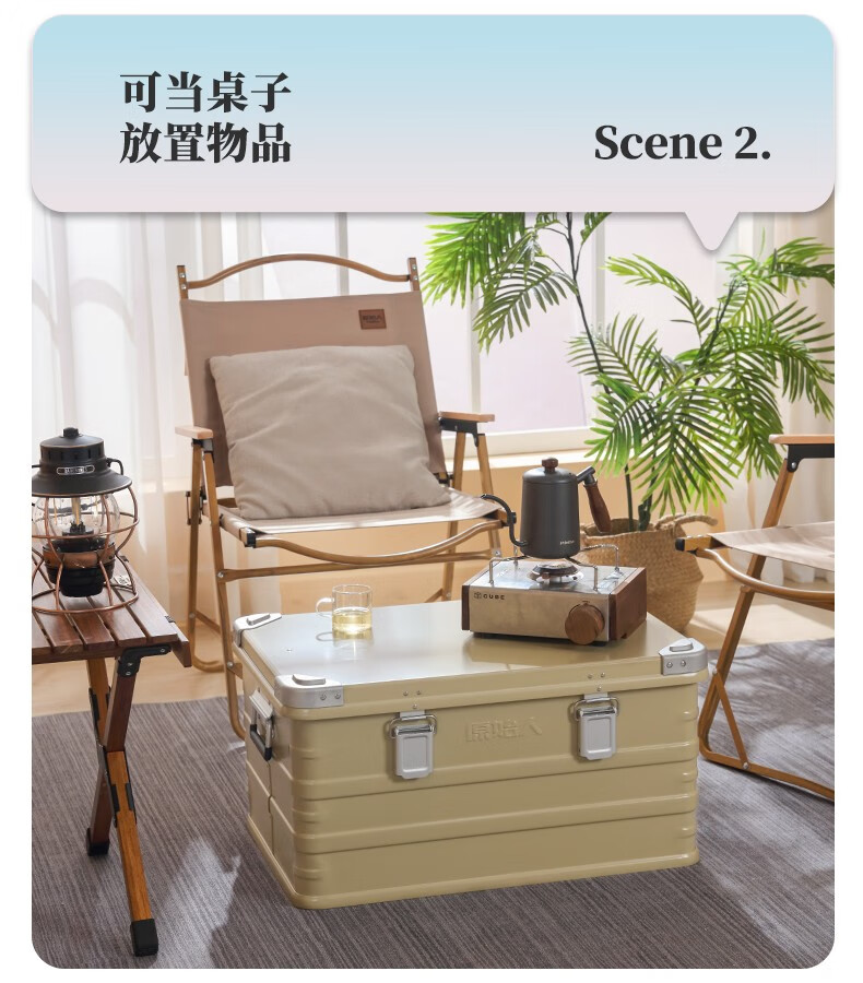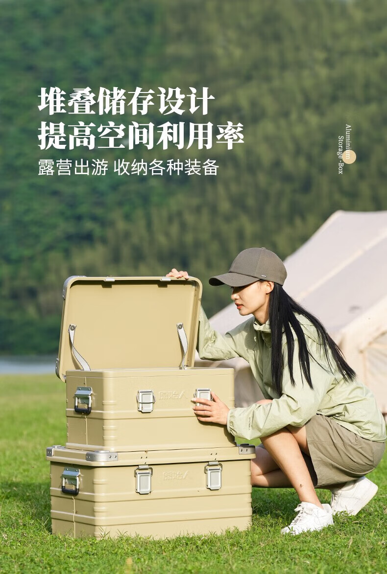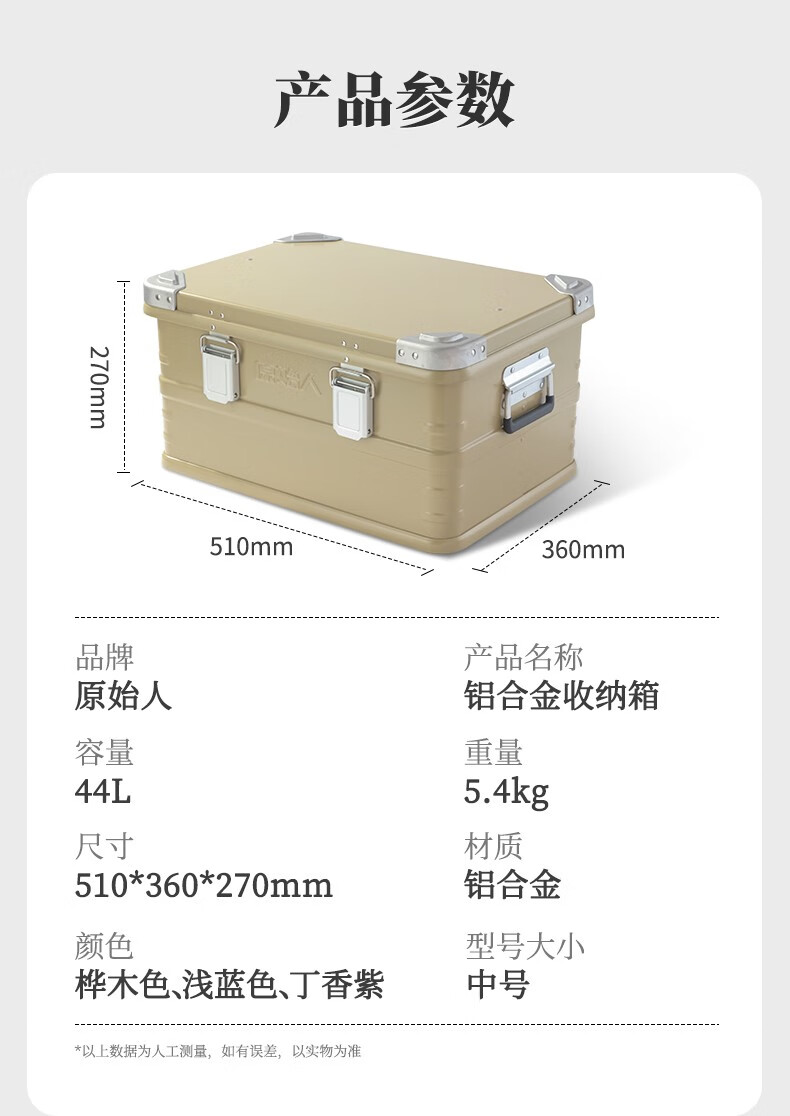 原始人铝合金收纳箱户外野营露营储物置物箱子家用旅行车载整理箱 44L桦木色