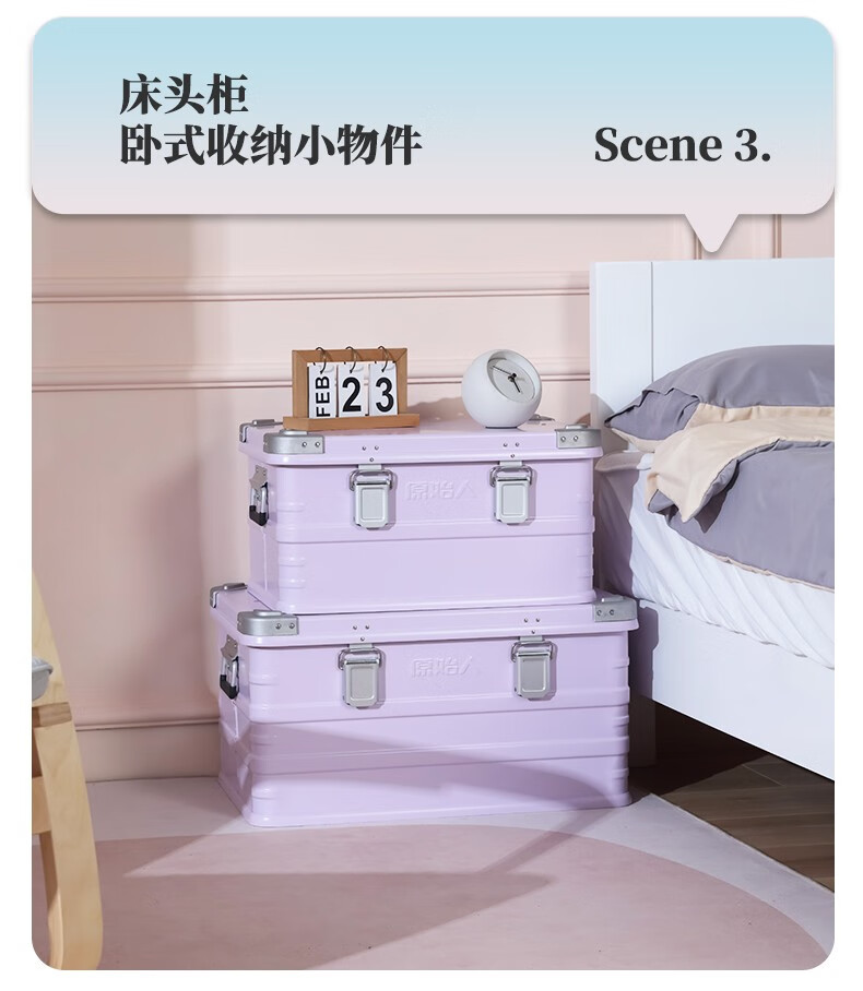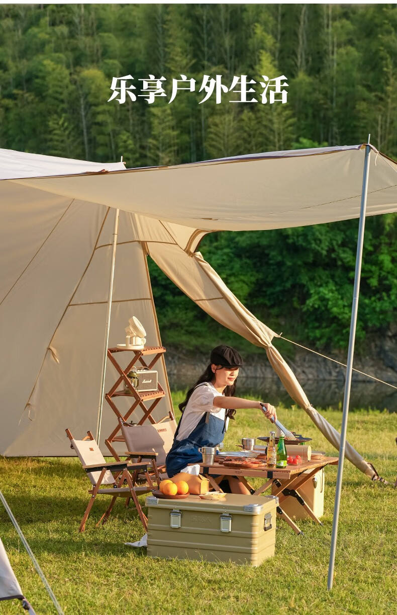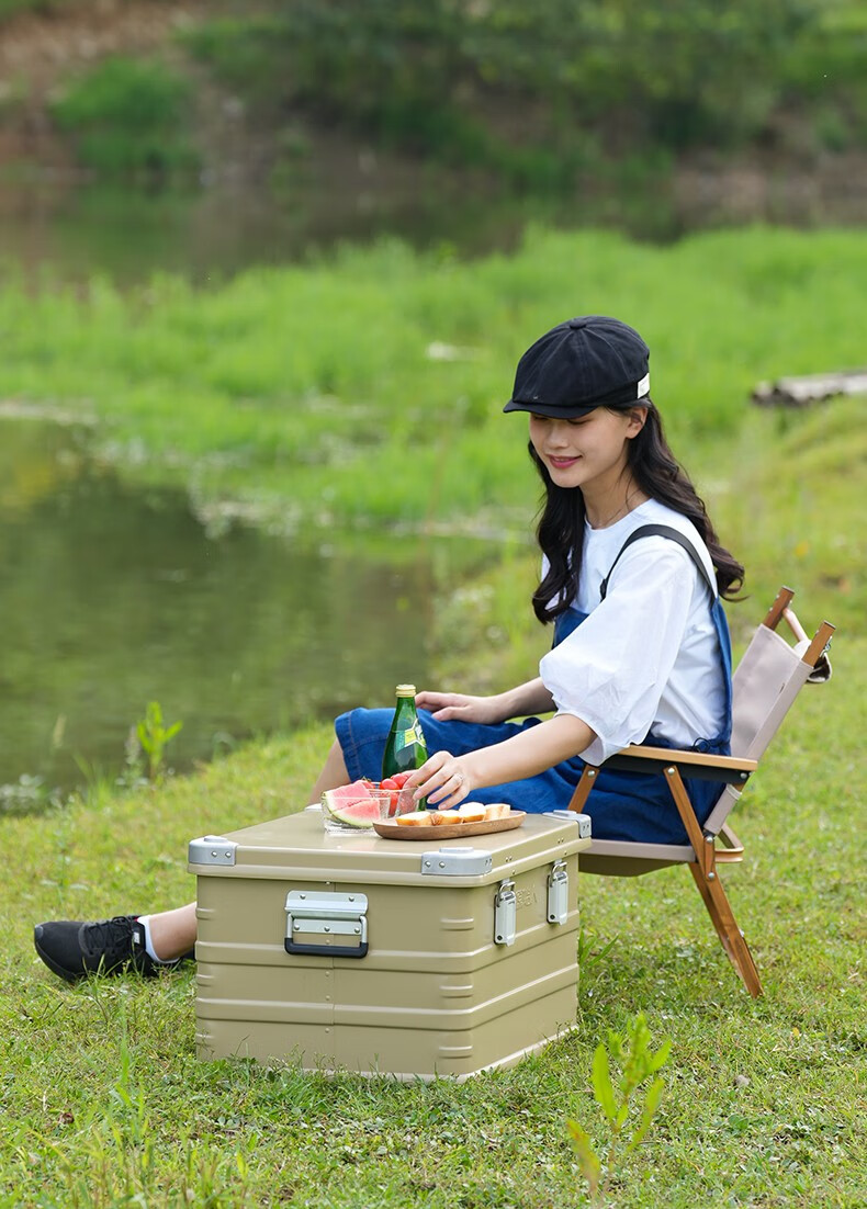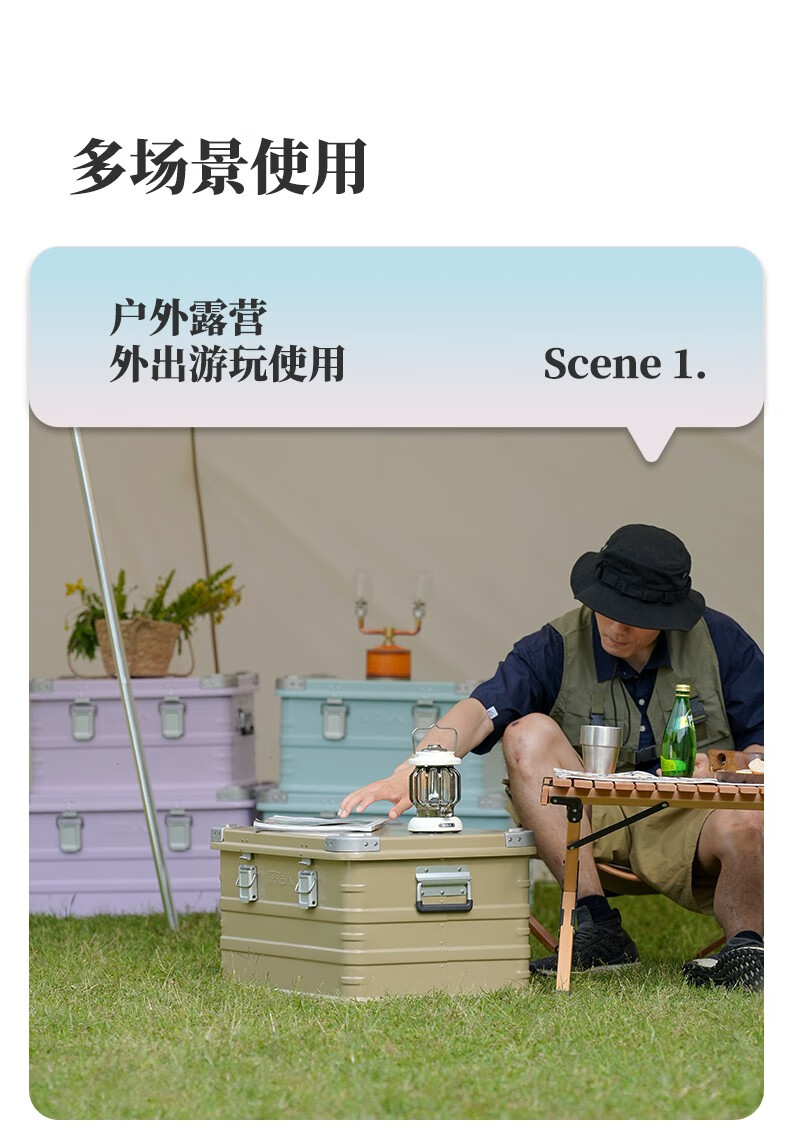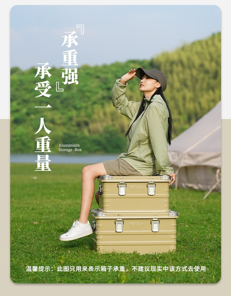 原始人铝合金收纳箱户外野营露营储物置物箱子家用旅行车载整理箱 44L桦木色