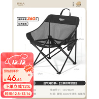 原始人(The Primitive)户外折叠椅露营椅子躺椅便携折叠月亮椅小凳子折叠凳钓鱼凳 透气网纱款典雅黑【三根织带加固】