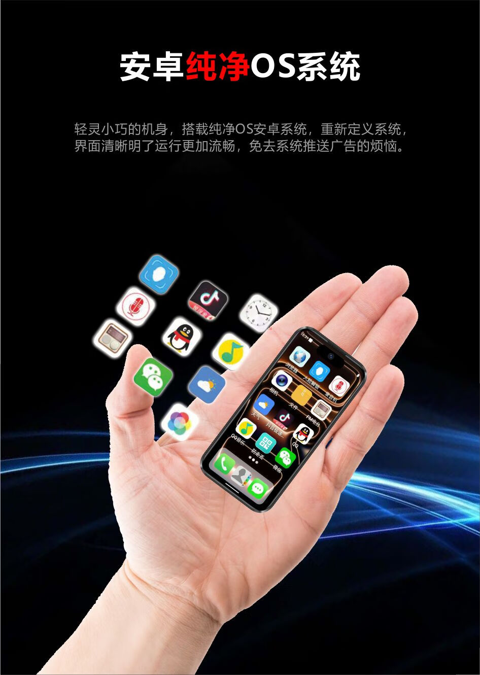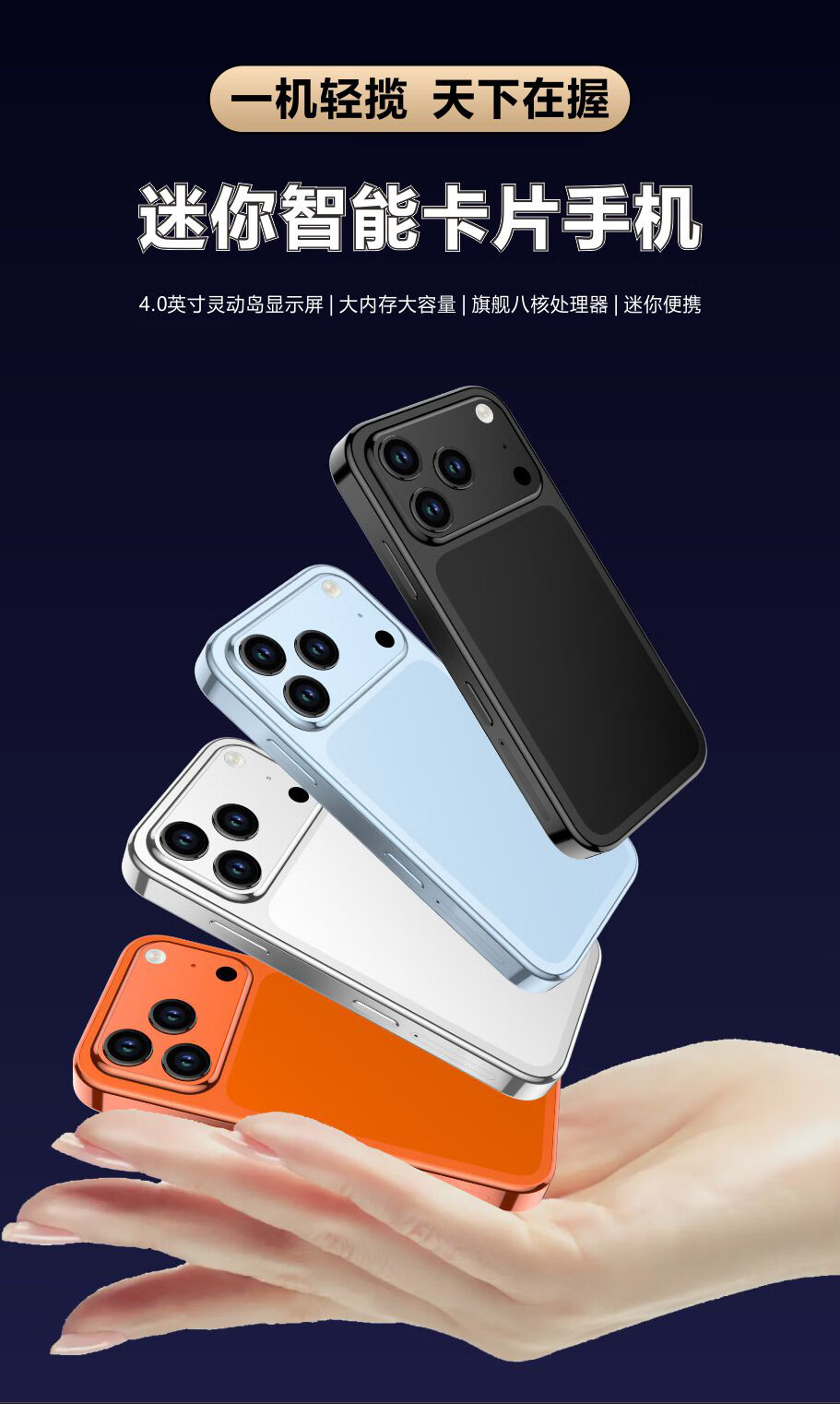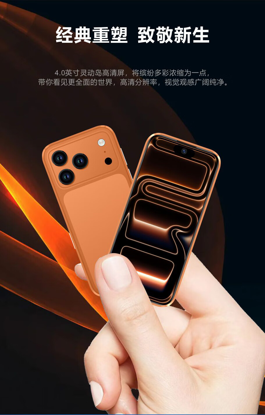 科米mini17智能迷你小手机纯净版4英寸小屏时尚便携5G全网通双卡学生 迷你橙 256G【纯净版系统无广告】