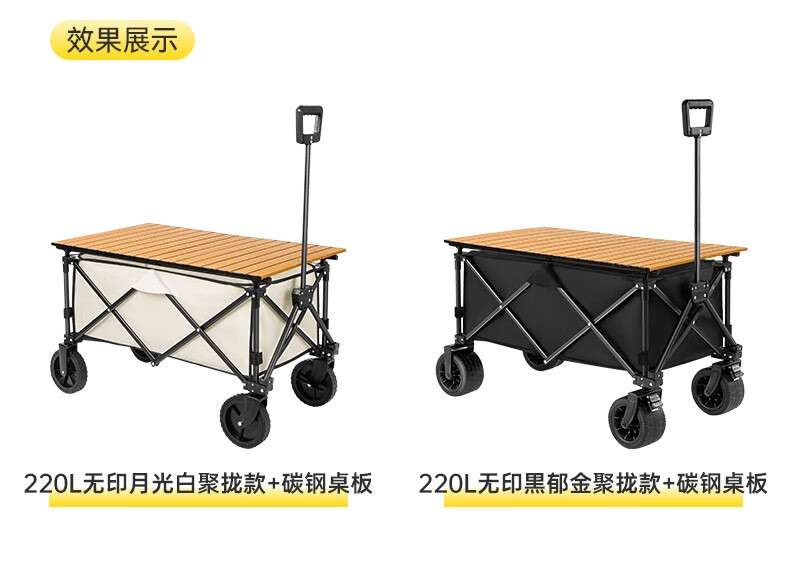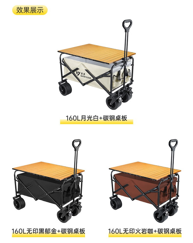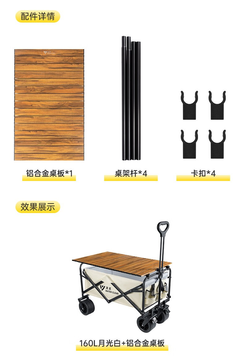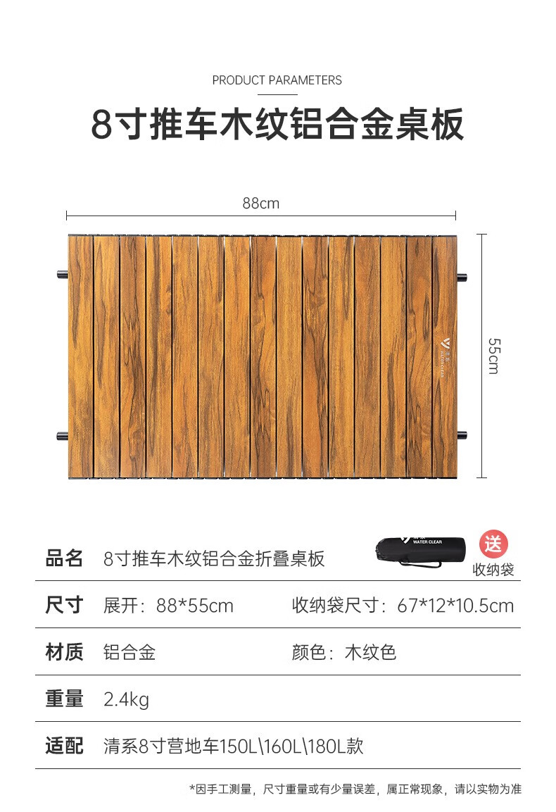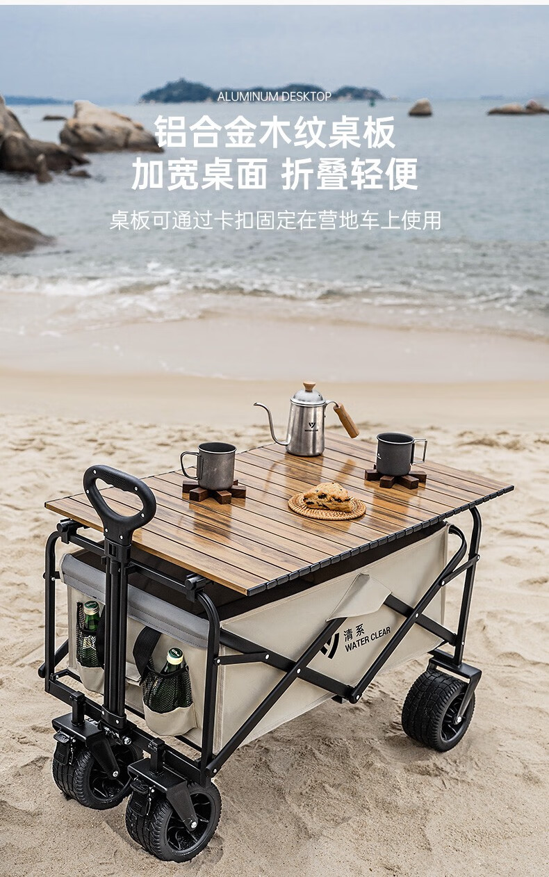 清系露营推车营地拖车可折叠户外手推野餐小拉车野营手拉车桌板 8寸推车木纹碳钢折叠桌板