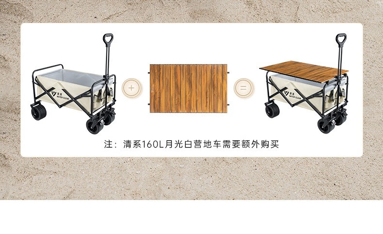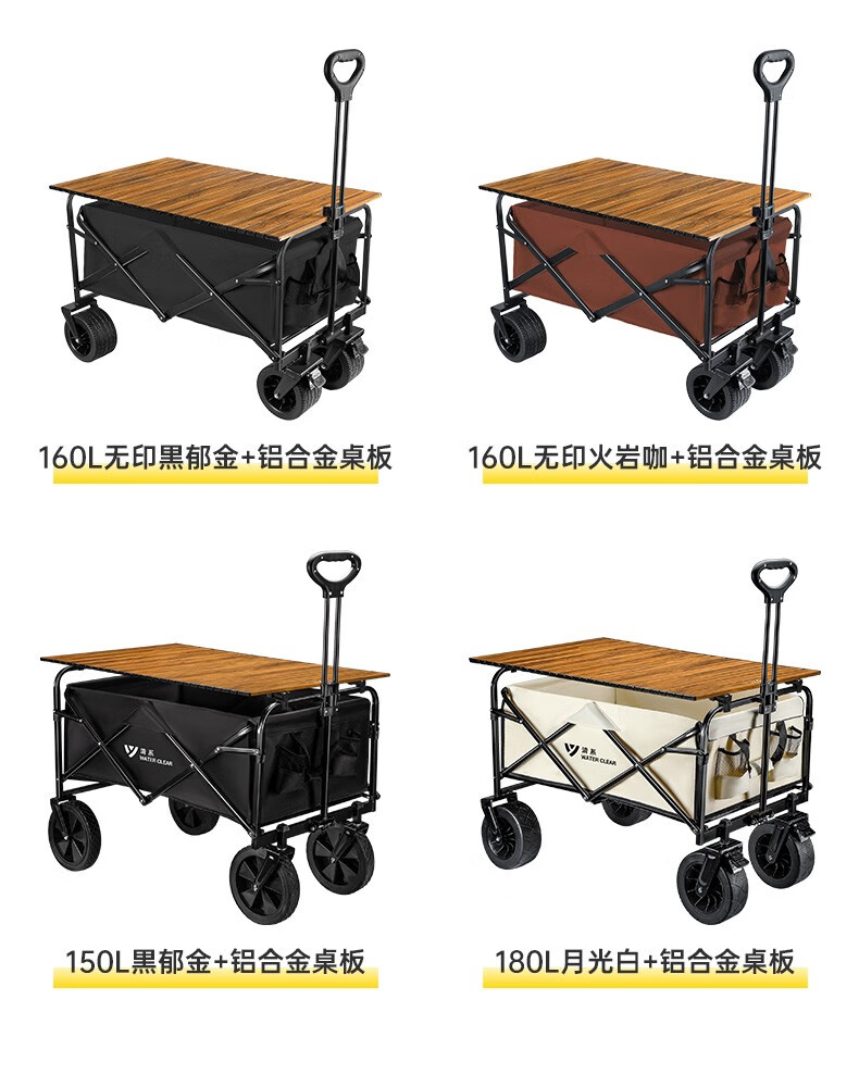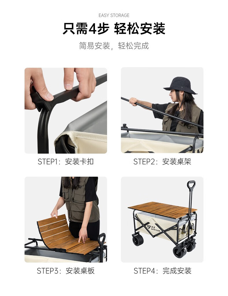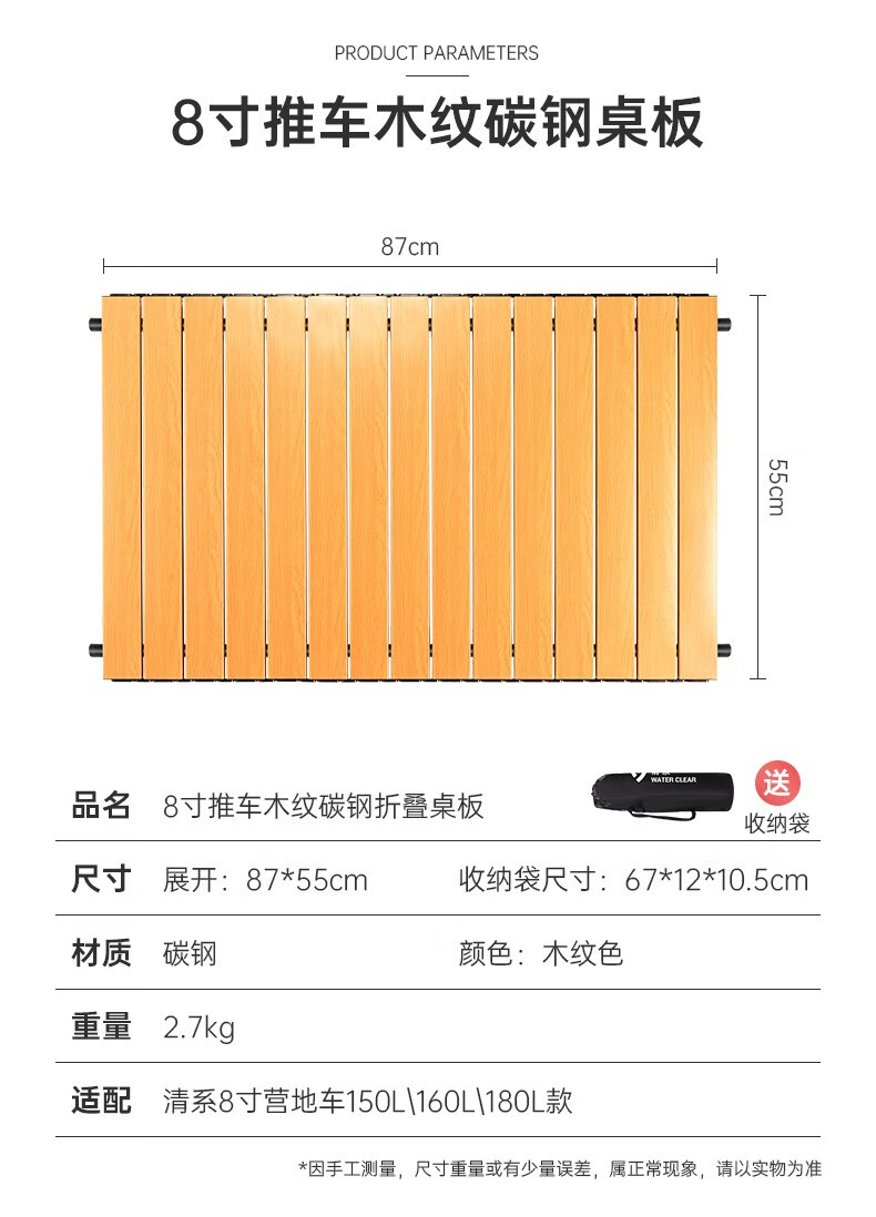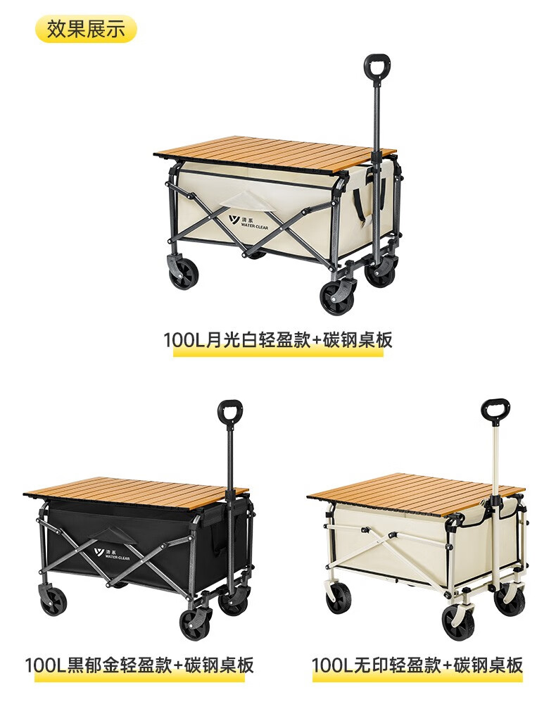 清系露营推车营地拖车可折叠户外手推野餐小拉车野营手拉车桌板 8寸推车木纹碳钢折叠桌板