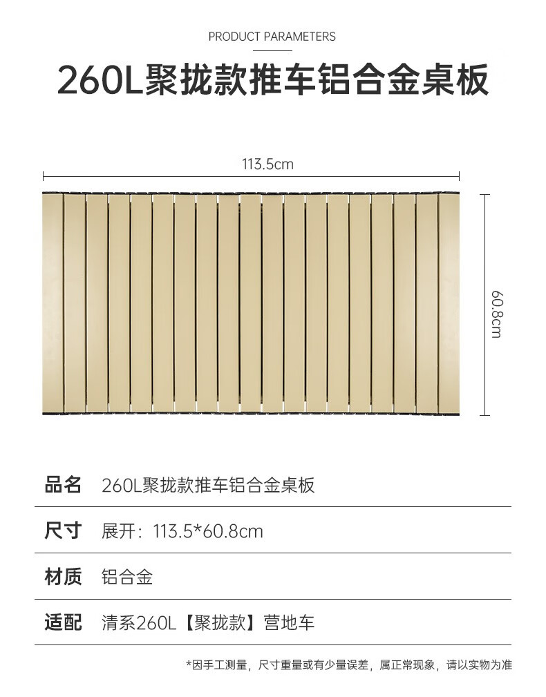 用积分换了一个野营推车,可惜没有桌板,想着后配一个合适的盖板,量好尺寸,下单。收到货马上试了试,特别合适。周末出去野营,就用上了,安装拆卸特别方便,