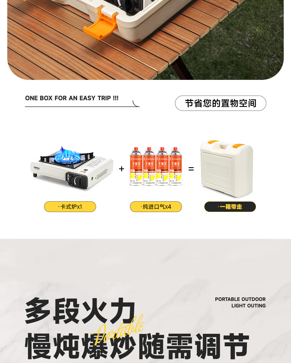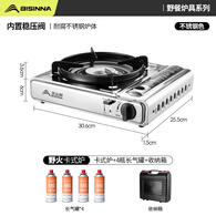 北山狼 防爆不锈钢户外卡式炉分体式露营炉具套装便携卡磁炉锅具三件套 炉具+4气罐+收纳箱