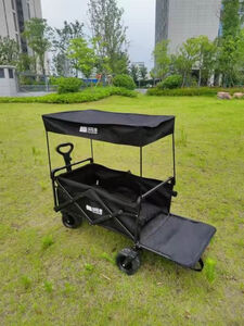 疆屿露营推车营地车露营车野餐车摆摊折叠户外露营儿童小推车旅行车 黑色【旗舰款】+遮阳棚+雨棚