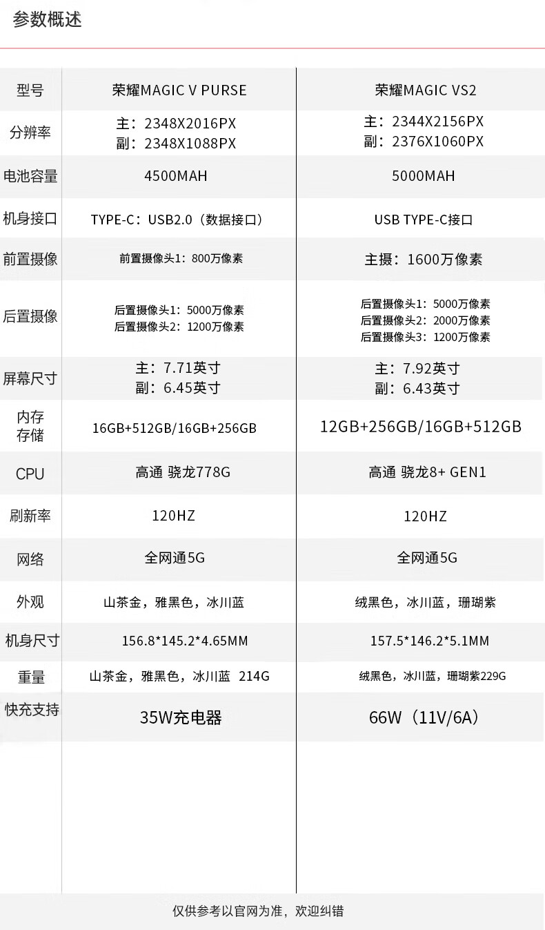 荣耀旗舰新品手机 荣耀Magic Vs 2 5000mAh 荣耀Magic vs2 5G折叠屏手机 purse 轻薄机身 雅黑色【V purse】 16GB+256GB