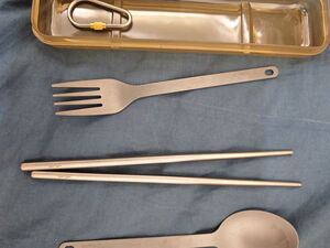 钛合金刀叉🍴早己经收到,东西做工精致,一物两用,加上筷子,露营必备神器,品牌商品,质地杠杠的,天气凉快了,外出体验,满意👍