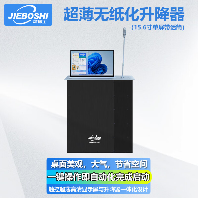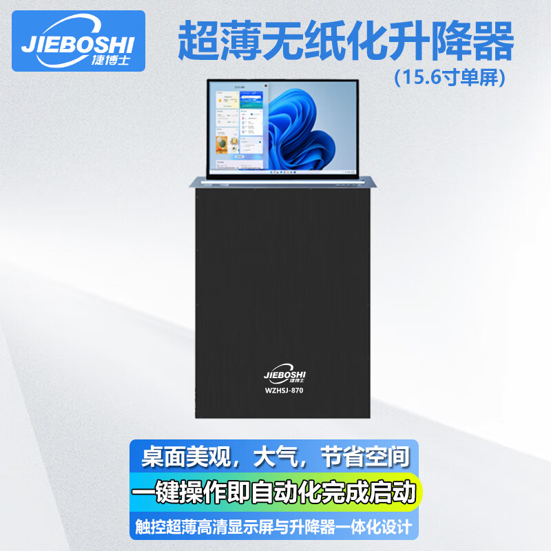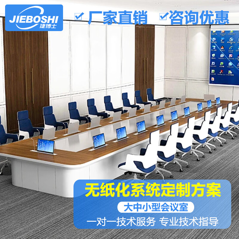 捷博士JIBOSHI无纸化会议系统超薄触摸升降显示器一体机电子桌牌会议桌椅升降话筒定制解决方案 超薄无纸化升降器(15.6寸双屏10.1)