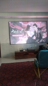 投影亮度:相当可以,画面清晰 外形外观:屏幕超薄不占地方 音质音效:音质超好,看电影非常棒 操作难易:操作简单快捷