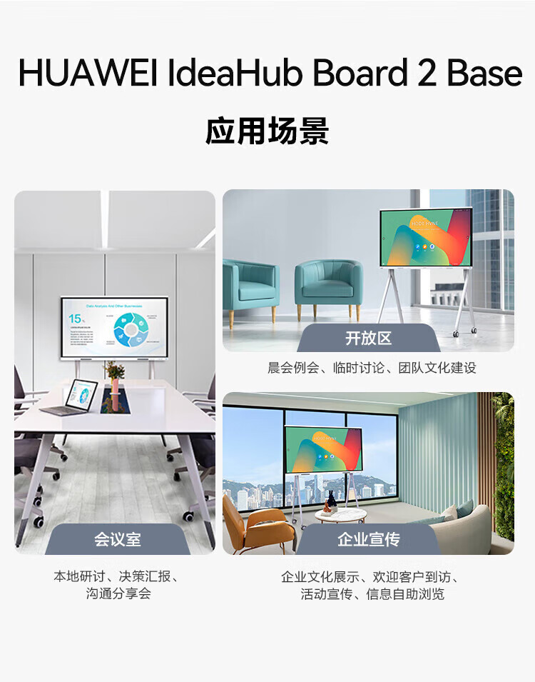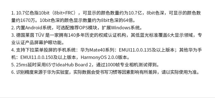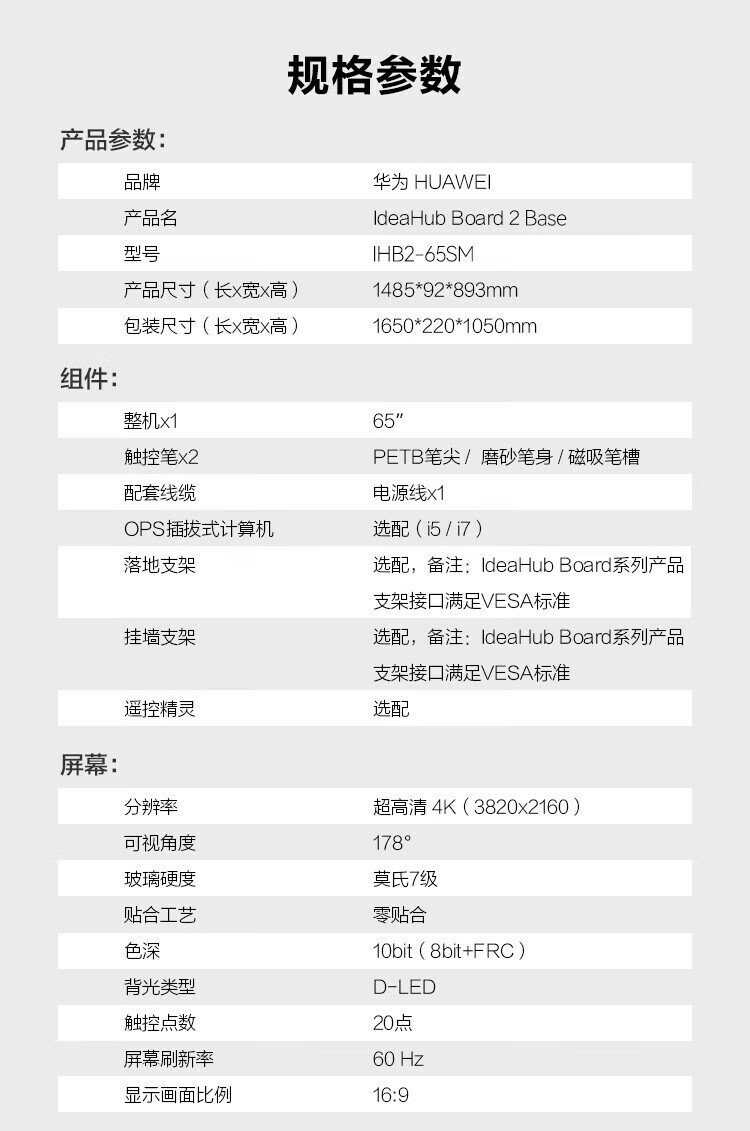 华为(HUAWEI)IdeaHub Board2Base 会议平板教学一体机4K多媒体触摸电视白板 65英寸(安卓系统+壁挂支架+安装