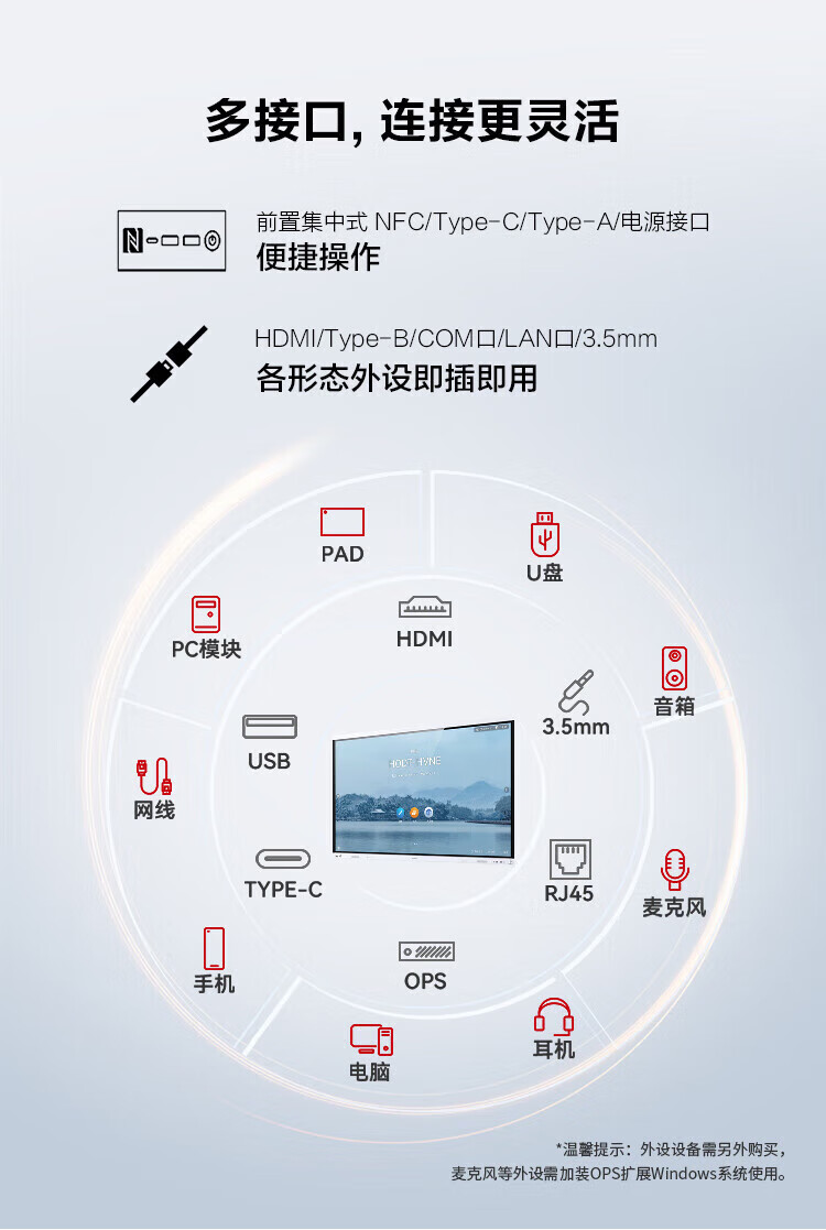 智能会议平板一体机多媒体教学电子白板多功能电视触摸屏显示器 WIN10系统I7/8+256 定制配置预付