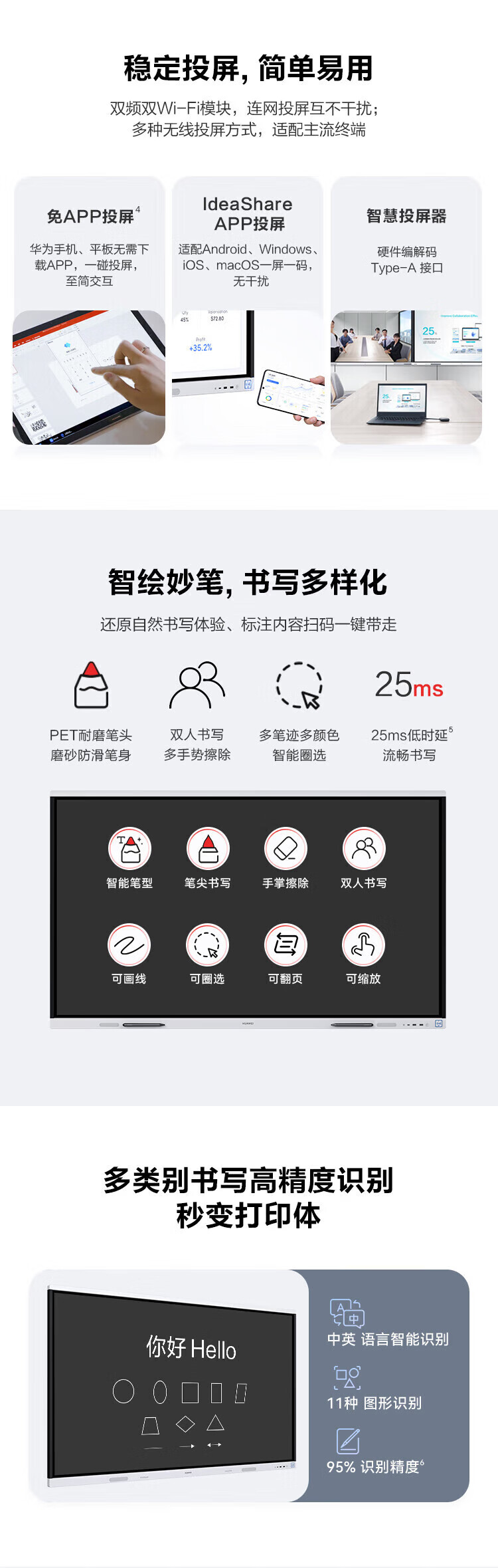 会议平板看了很久,因为一直用华为生态,所以选择了华为这款会议屏,目前使用并没有其它问题,会议屏画质清晰,操作简便,连接稳定,是高效会议的得力助手