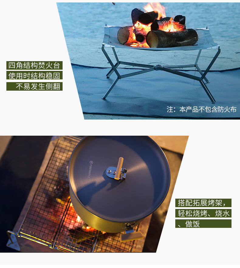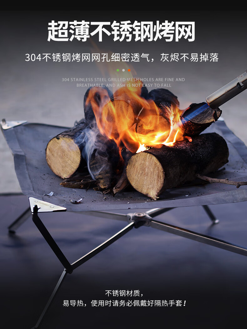 火枫(FIRE-MAPLE)轻薄折叠焚火台户外露营便携烧烤网篝火不锈钢烤架野外柴灶炉围炉 落虹焚火台
