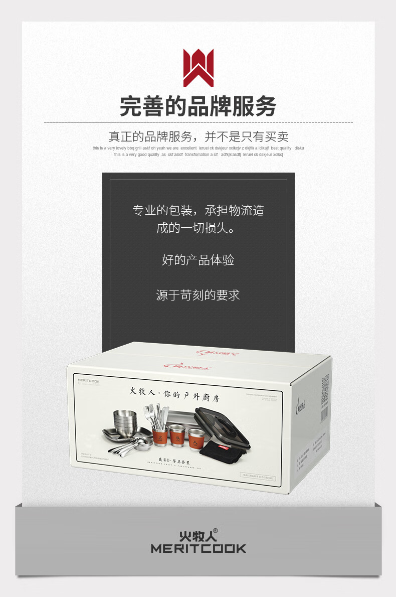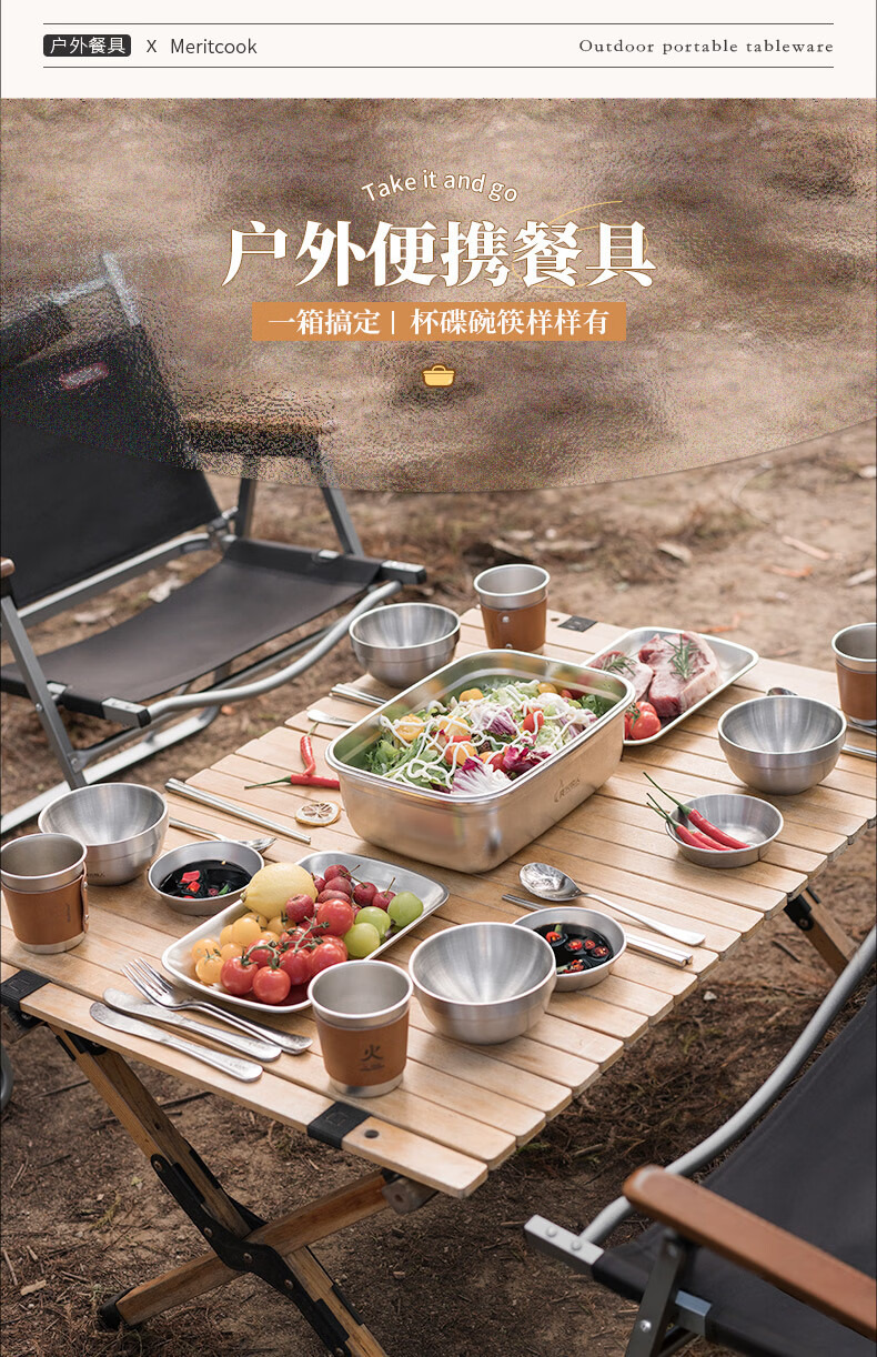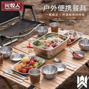 meritcook户外露营餐具厨具烧烤野炊野餐套装304不锈钢碗筷碟用具便携套装 便携式户外【厨具套装】