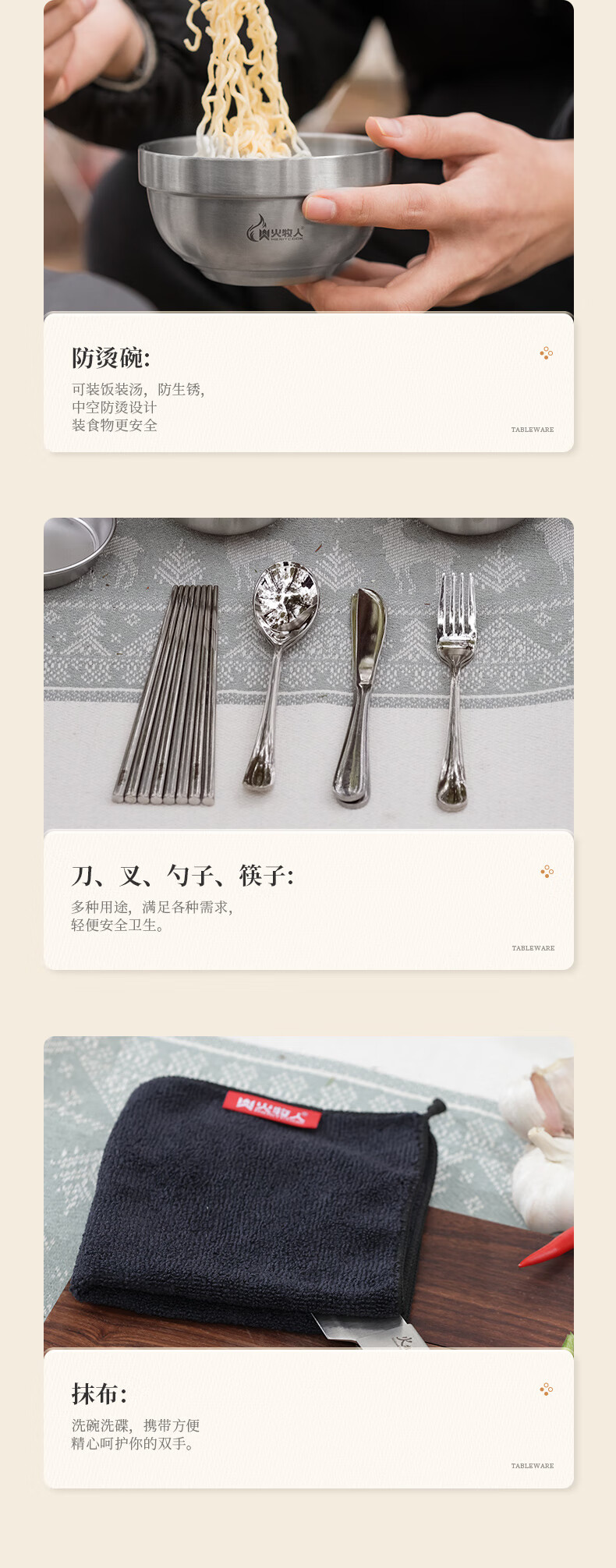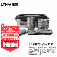 旅腾户外餐具便携套装露营用品装备野餐碗盘杯筷勺304不锈钢 餐具三人套装