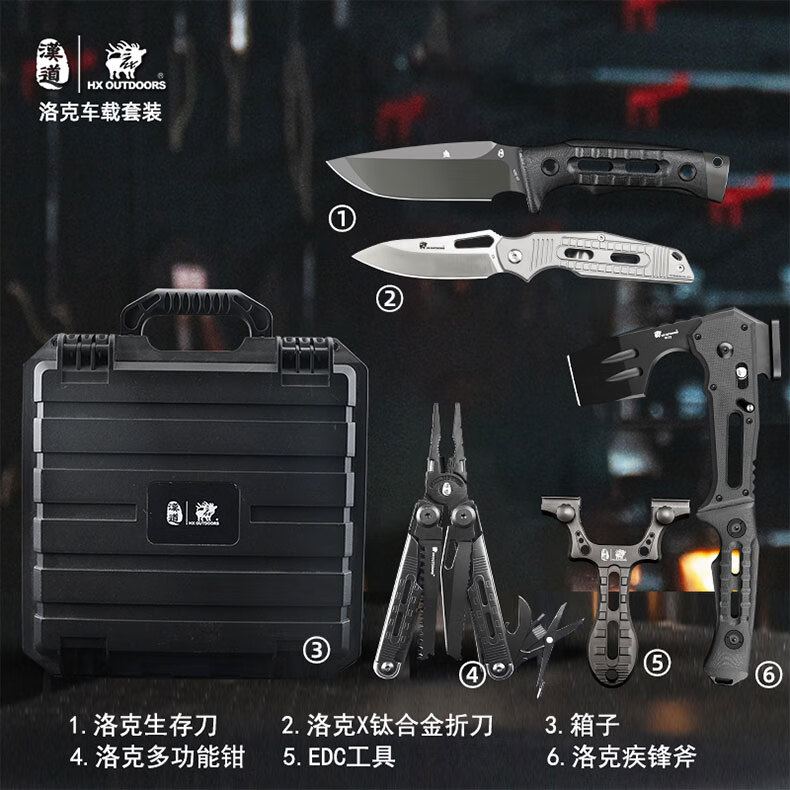 汉道洛克车载套装户外便携多功能刀钳斧组合自驾越野应急防身工具 黑色