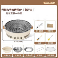 户外烧烤炉家庭烤肉炉圆形日式套装围炉家用煮茶便携全套烧烤炉 升级大号碳烤围炉+6件套